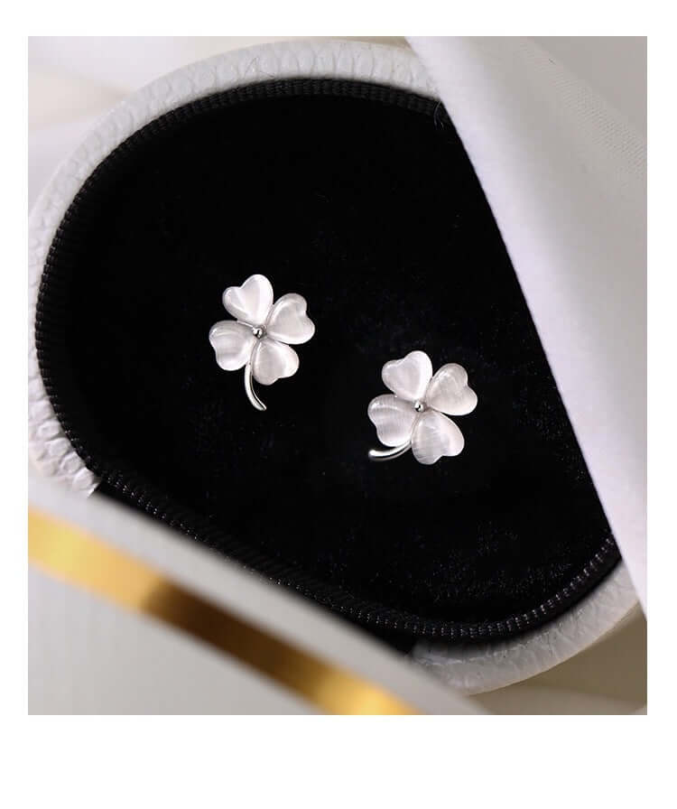 Add some daring style to your look with our 925 Silver Cat's Eye Four Leaf Clover Earrings! Made with quality silver and featuring a unique cat's eye design, these earrings are perfect for those who love taking risks and standing out from the crowd. Don't be afraid to make a bold statement with these daring earrings!