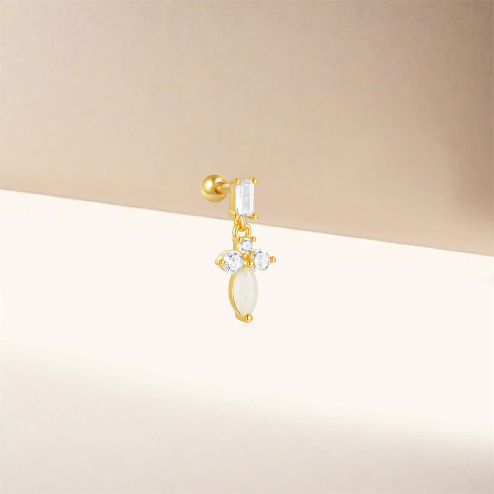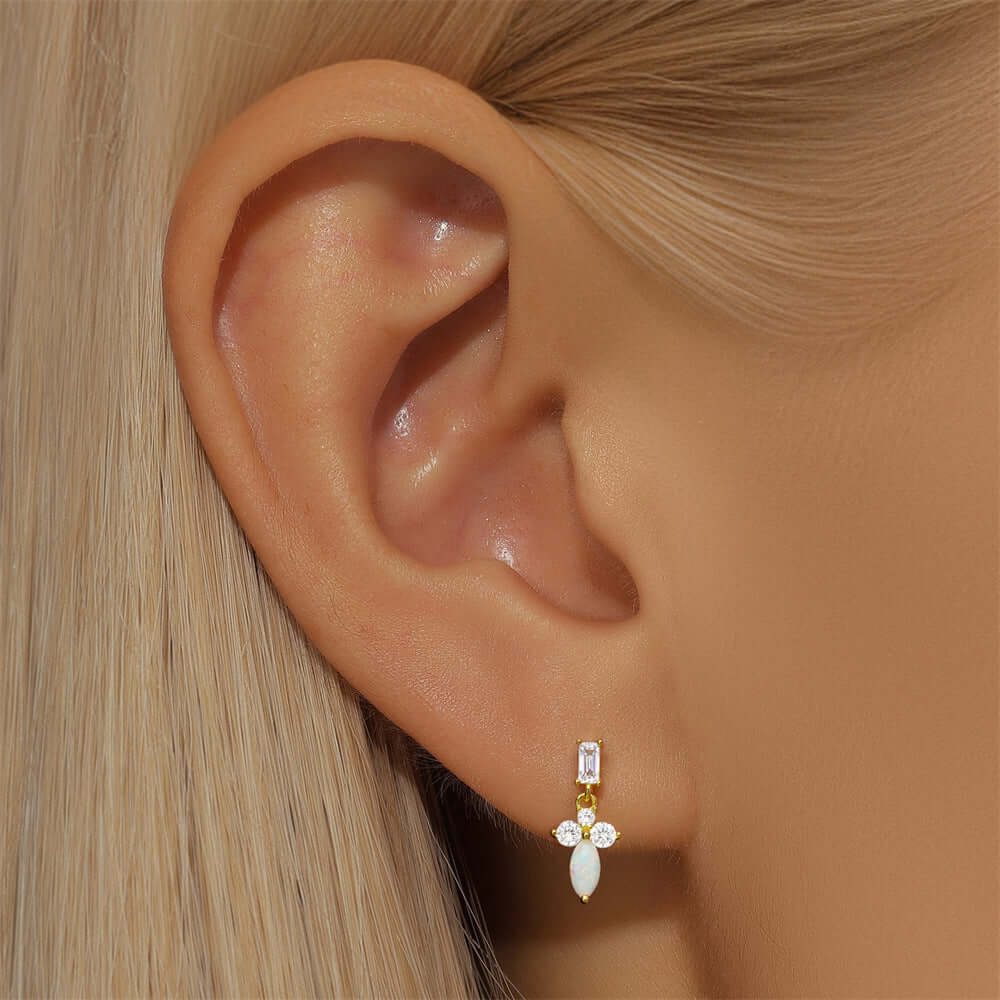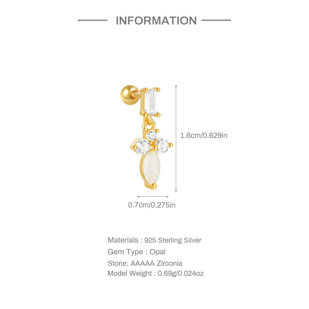 925 Silver Sword Opal CZ Diamond Ball Back Earrings