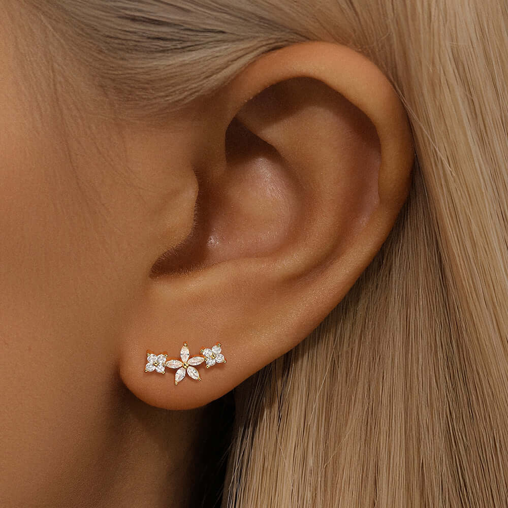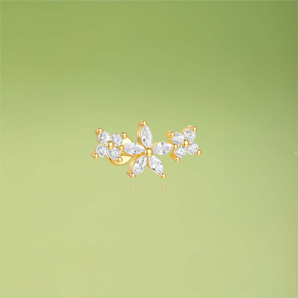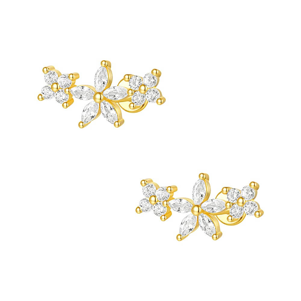 Embrace the thrill of the unknown with our 925 Silver Three Flower CZ Diamond Flat Back Earrings. The delicate flowers, crafted from high-quality sterling silver, feature sparkling CZ diamonds for a touch of glamour. Perfect for risk-takers who want to add a bold yet elegant touch to their style. Take on any adventure with these stunning earrings!
