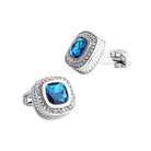 Copper Blue Rhinestones Silver Plated Cufflinks