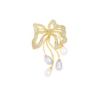 Add a touch of playful elegance to your outfit with our Copper Freshwater Pearl Zircon Bow Brooch. Perfect for any occasion, its unique design and materials add a fun twist to classic style. (No pearls of wisdom here, just a cute accessory!)