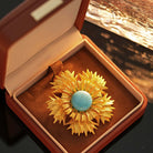 Unleash your inner risk-taker with our Copper Turquoise Sunflower Brooch! This bold and adventurous accessory features stunning Copper Turquoise petals that will add a touch of daring to any outfit. Take on the day with confidence and style with this unique and eye-catching brooch.
