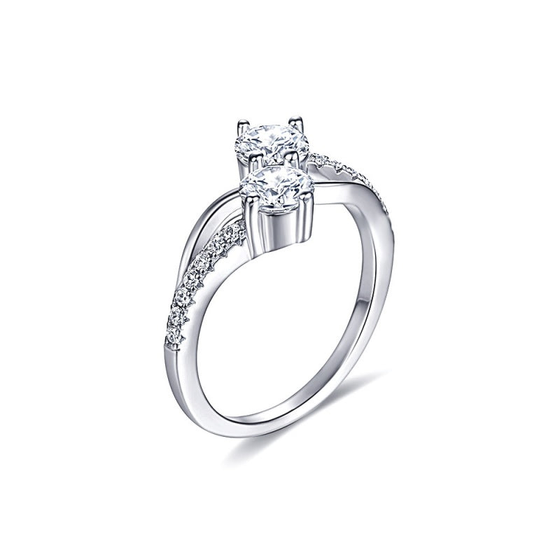 S925 Silver Double Round Crystal Toi et Moi Ring