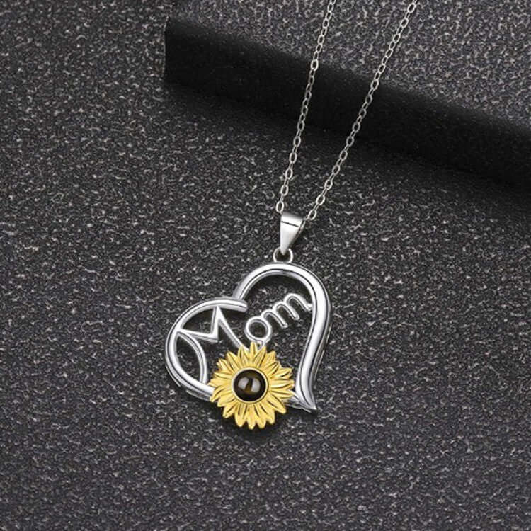 S925 Sterling Silver Sunflower Necklace with Picture Inside