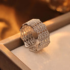 Take a risk and stand out with our 925 Silver Braided Lace Hollow Ring. Made of high-quality silver, its intricate braided lace design will add an edgy touch to any outfit. Be bold and fearless with this statement piece!