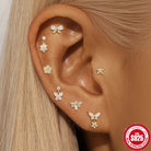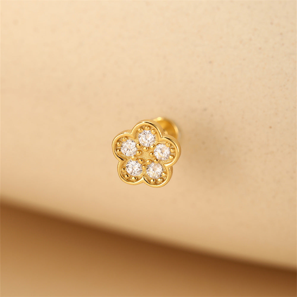 5A Zircon Flower Flat Back Earrings 925 Sterling Silver Gold Plated Cartilage Jewelry