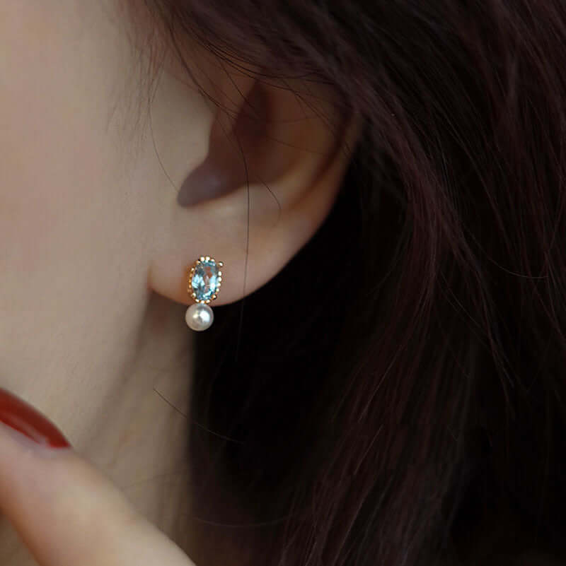 925 Silver Topaz Pearl Earrings