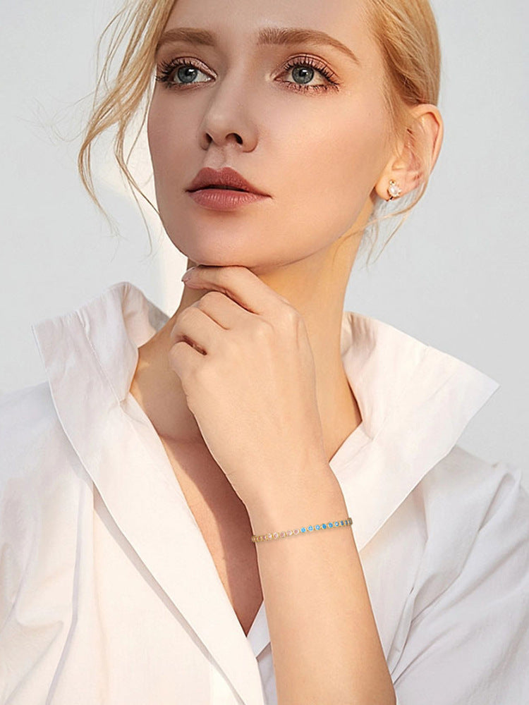 Elevate your style with our Green and White Shiny Zirconia Tennis Paperclip Chain Bracelet. Featuring a beautiful mix of green and white zirconia stones and a trendy paperclip chain design, this bracelet is a must-have for any fashion-forward individual. Add a touch of elegance and shine to any outfit with this stunning piece.