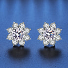 Octopus Sunflower Moissanite Diamond Stud Earrings Silver