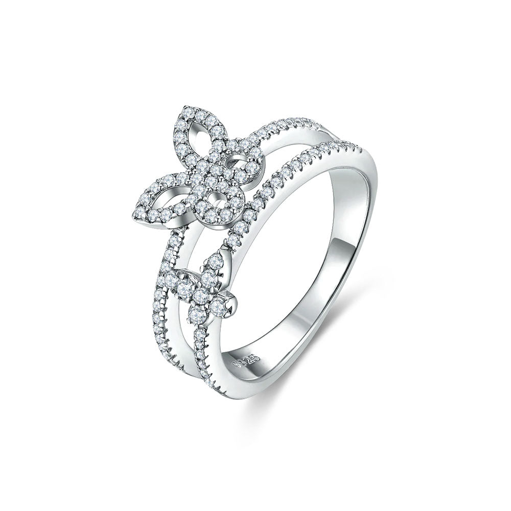 S925 Sterling Silver Wedding Bow Toi et Moi Ring
