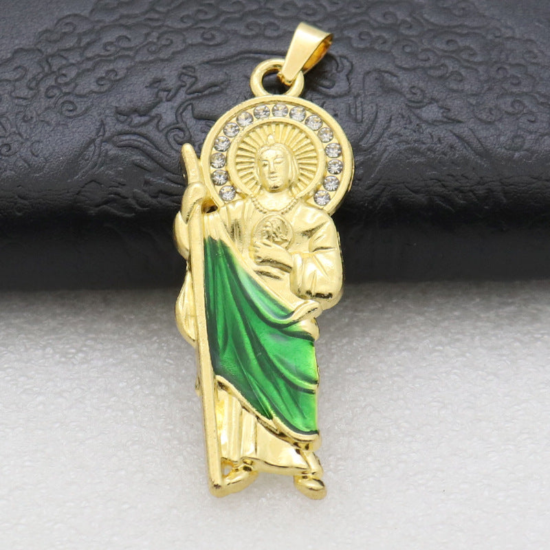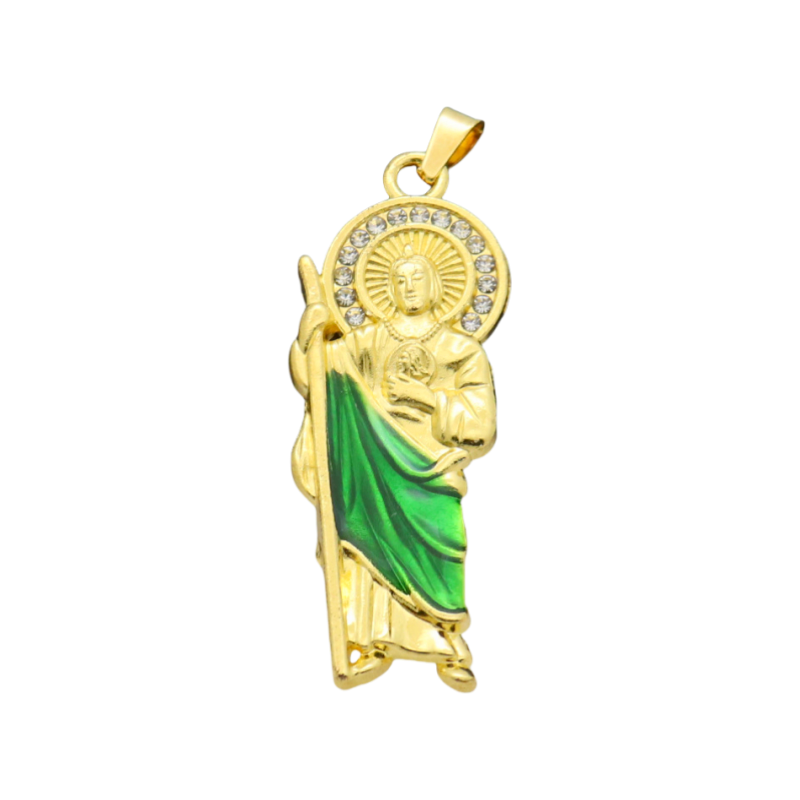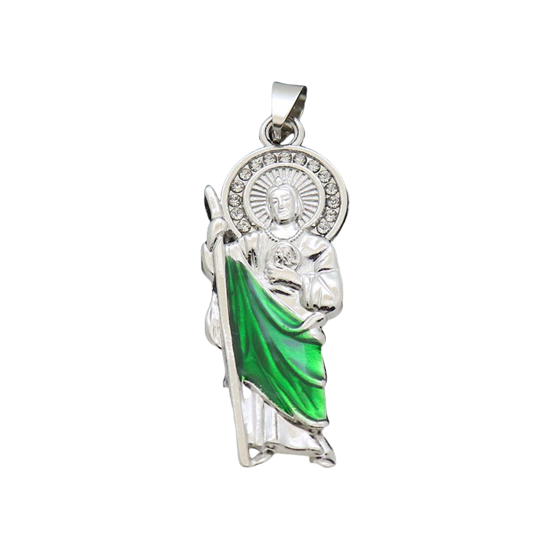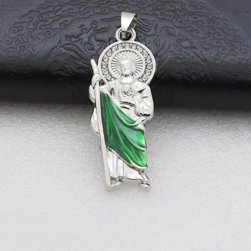 Simulated CZ Diamond On San Judas Pendant Necklace