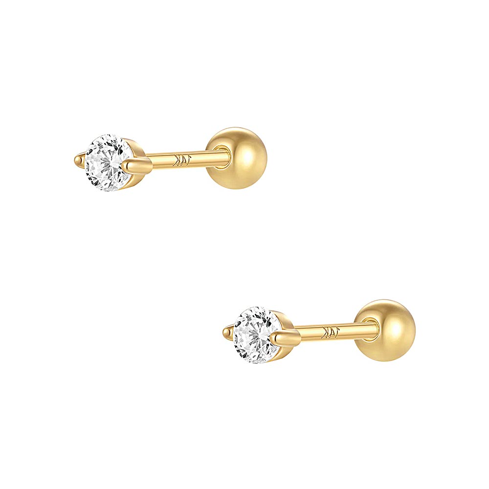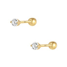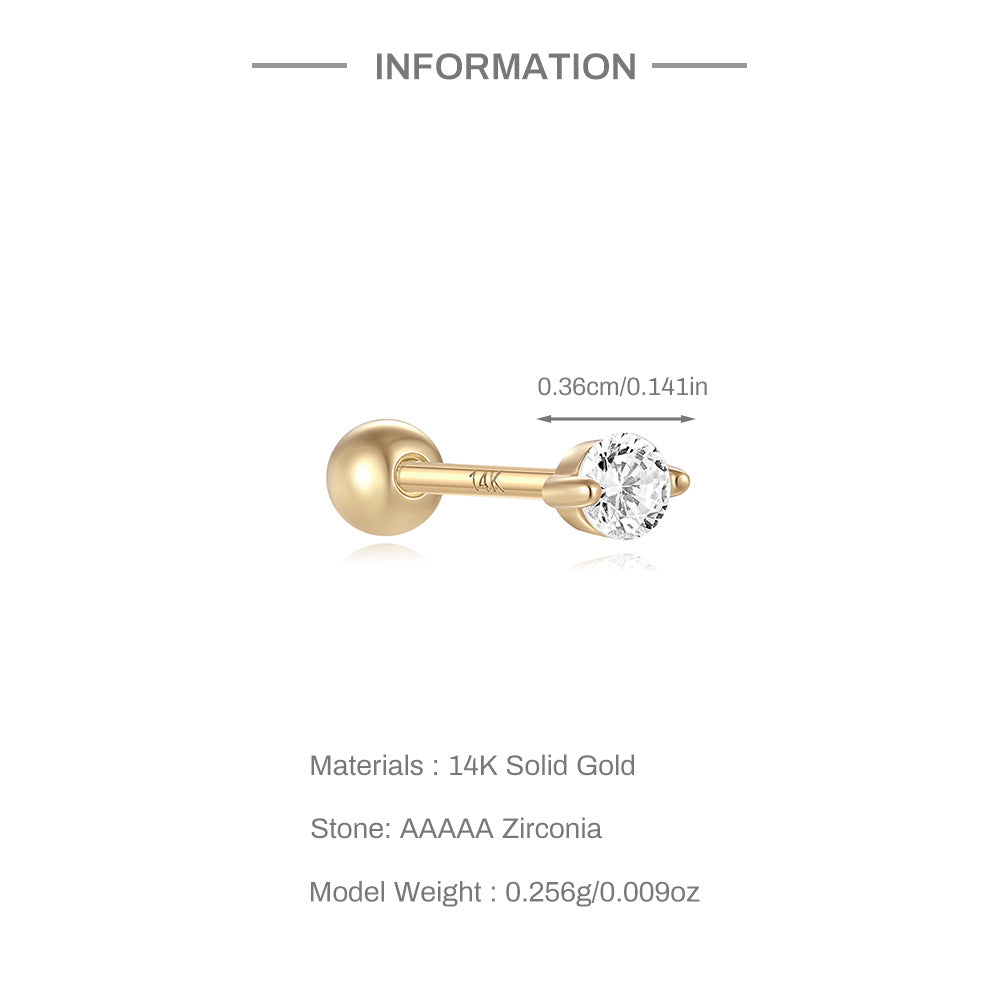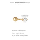 14k GOLD Single Circle CZ Diamond Ball Back Earrings