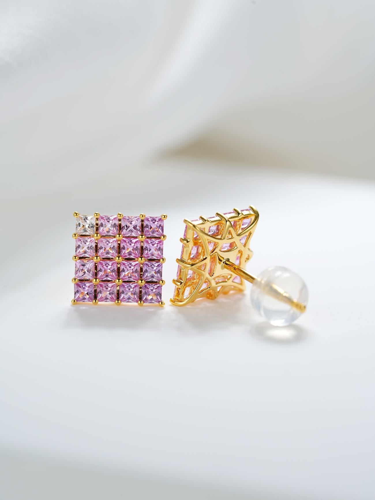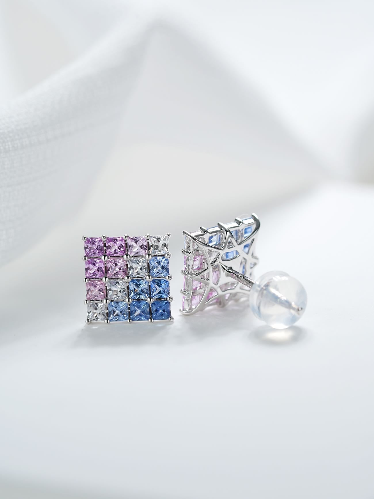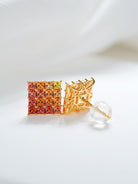 18k Gold Radiant Cut Oil Painting Rainbow Earrings