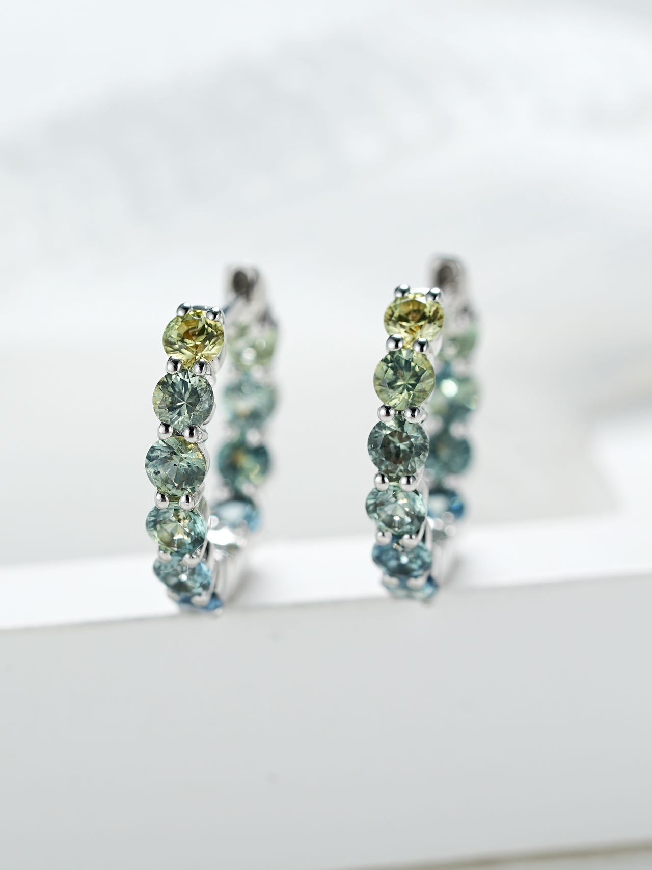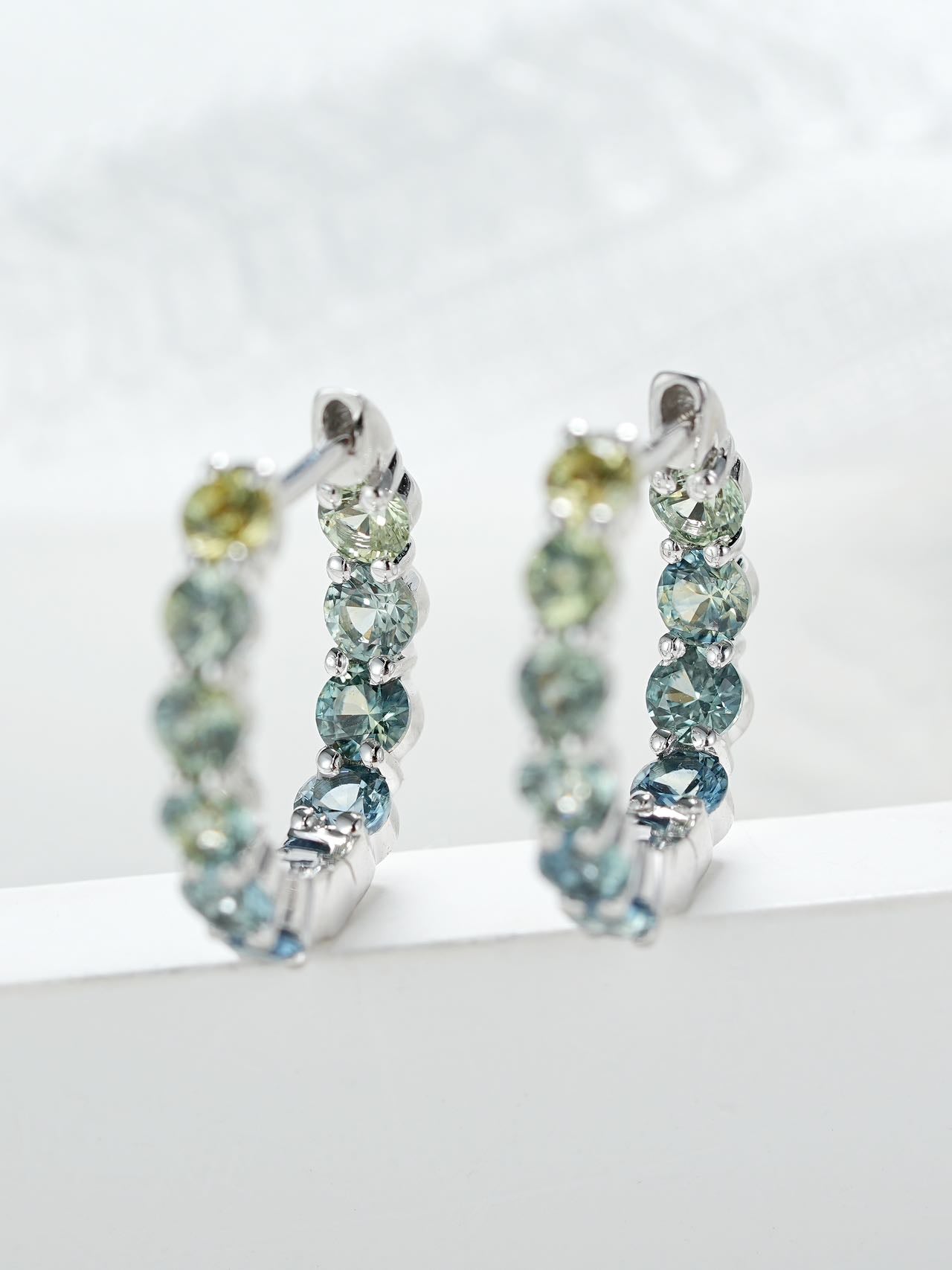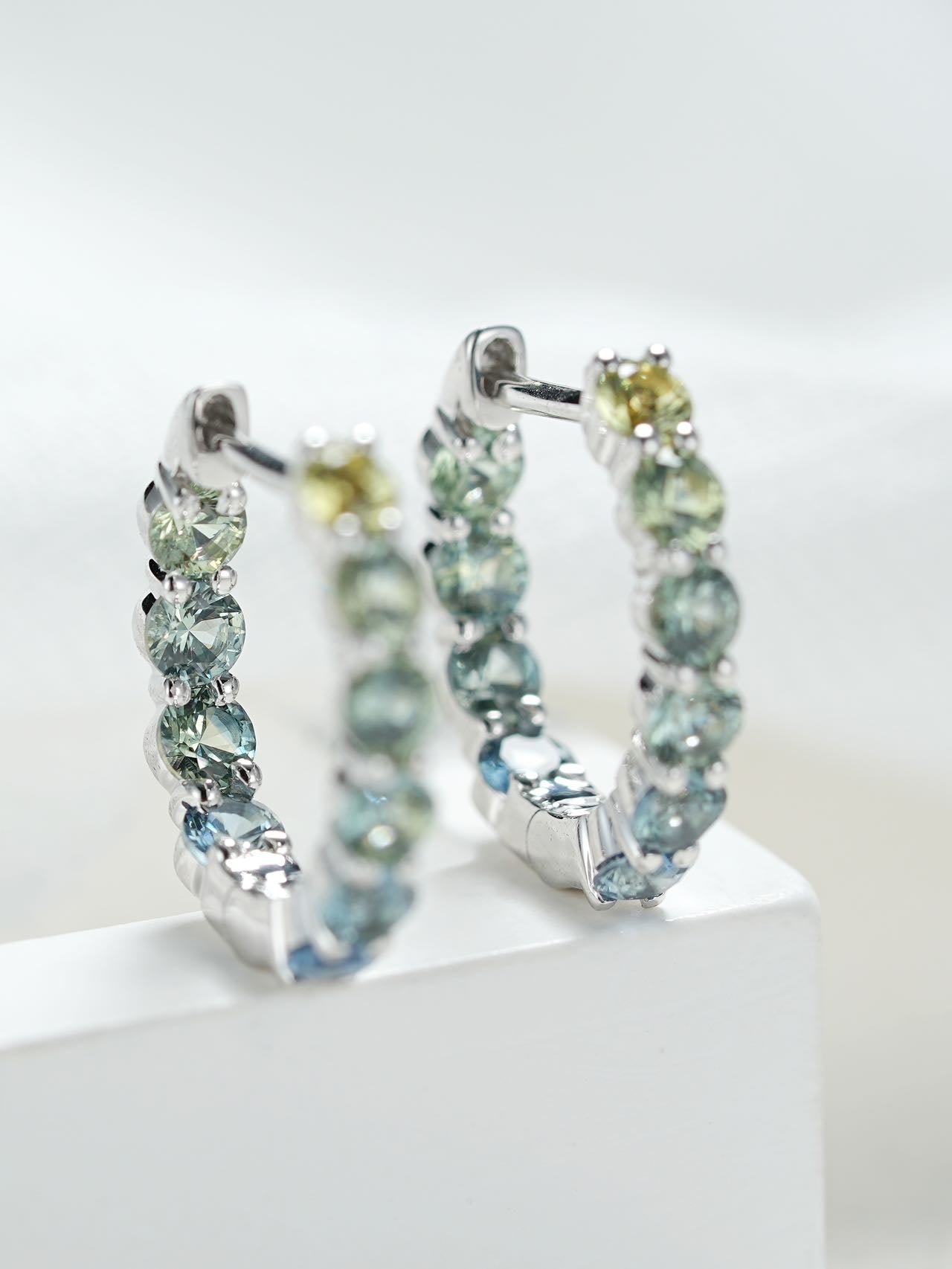 18K Gold Round Cut Turquoise Bubble Hoop Earrings