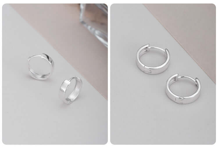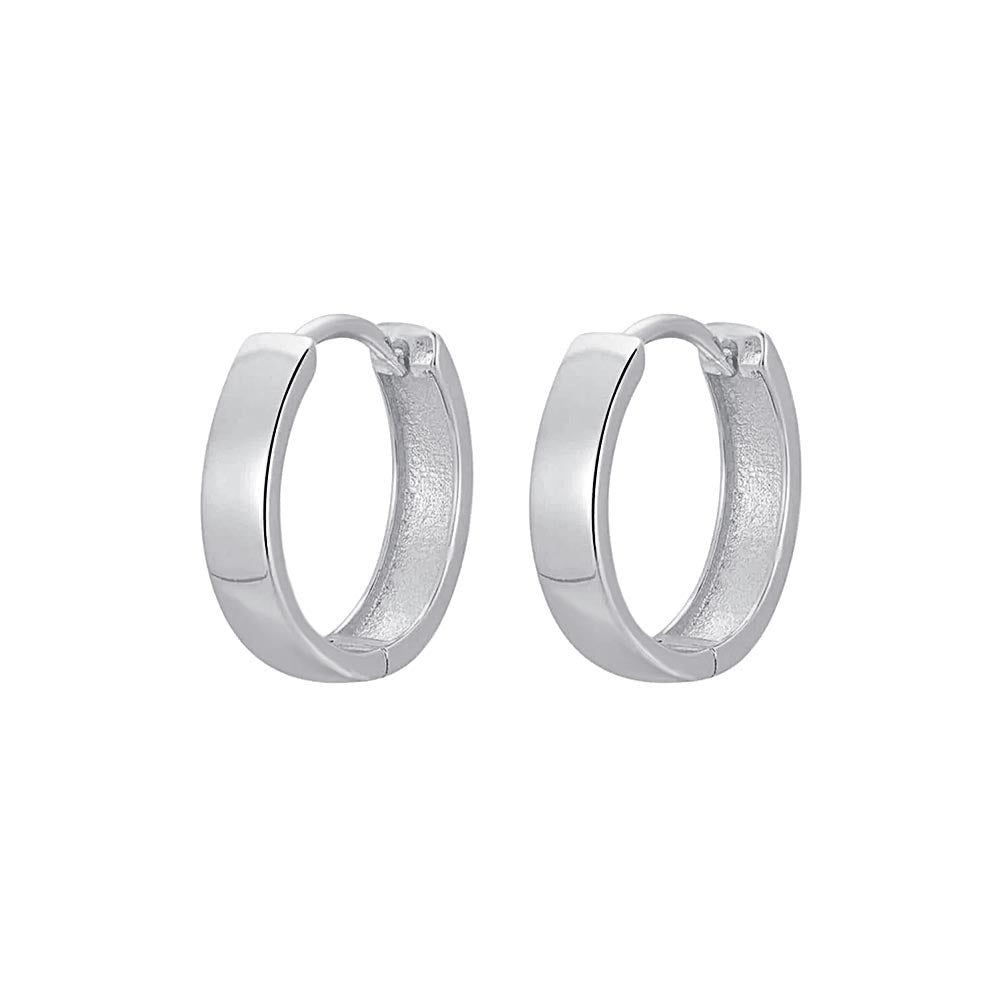 925 Silver Simple Polished Wide Circle Silver Huggie Earrings