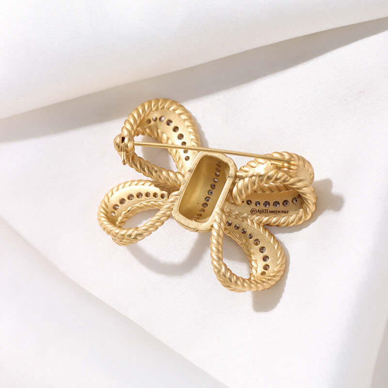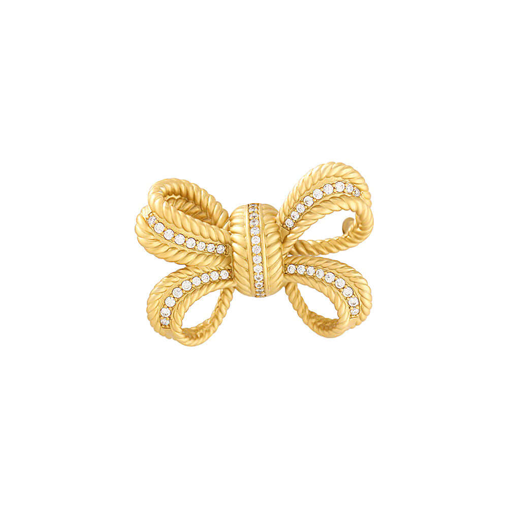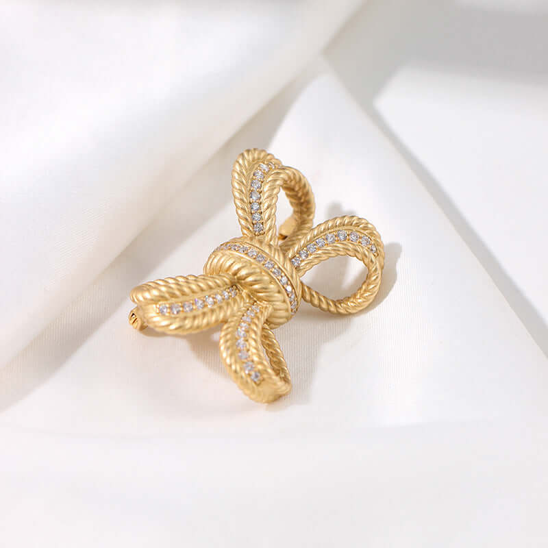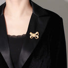 Copper Micro-Inlaid CZ Diamond Bow Brooch