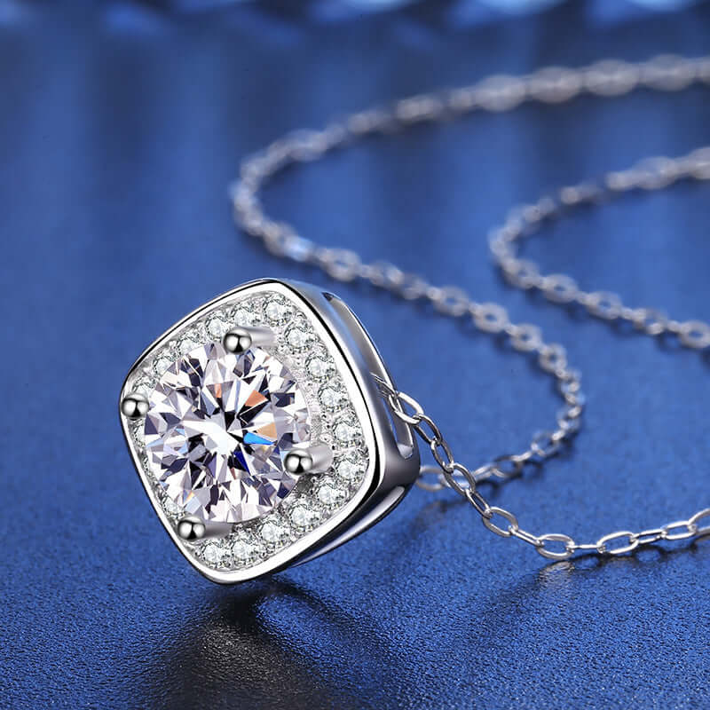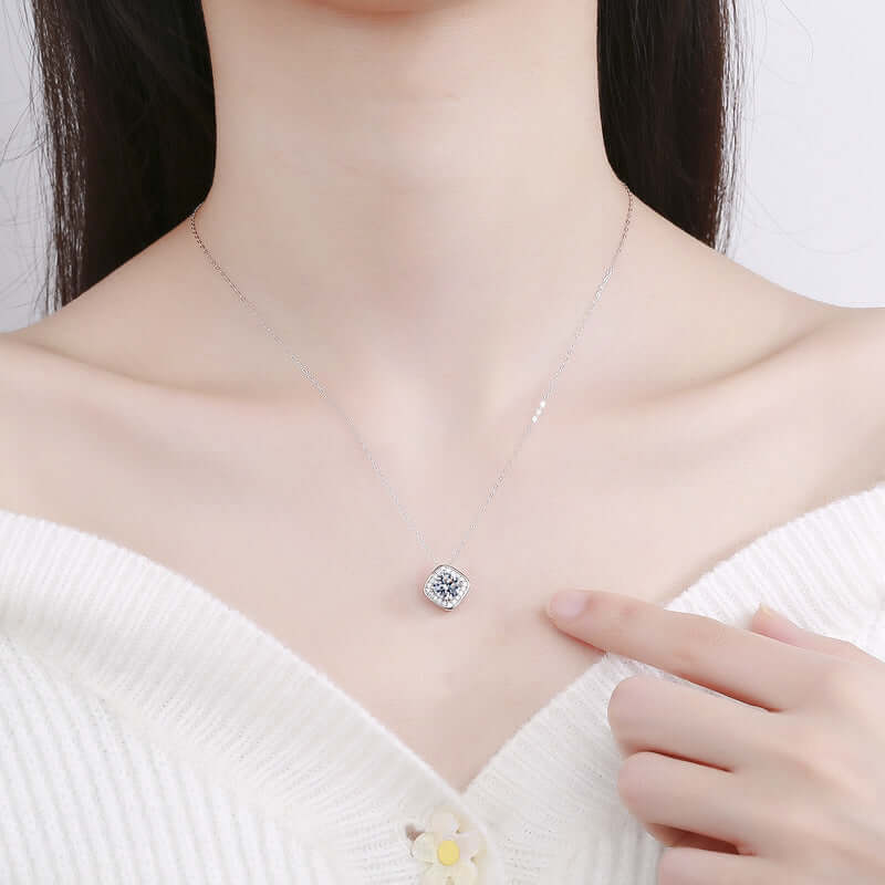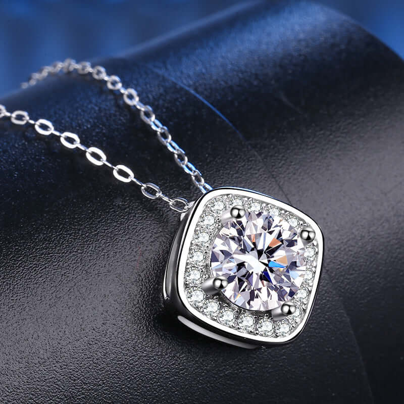 क्लासिक स्क्वायर पेंडेंट मोइसेनाइट हार