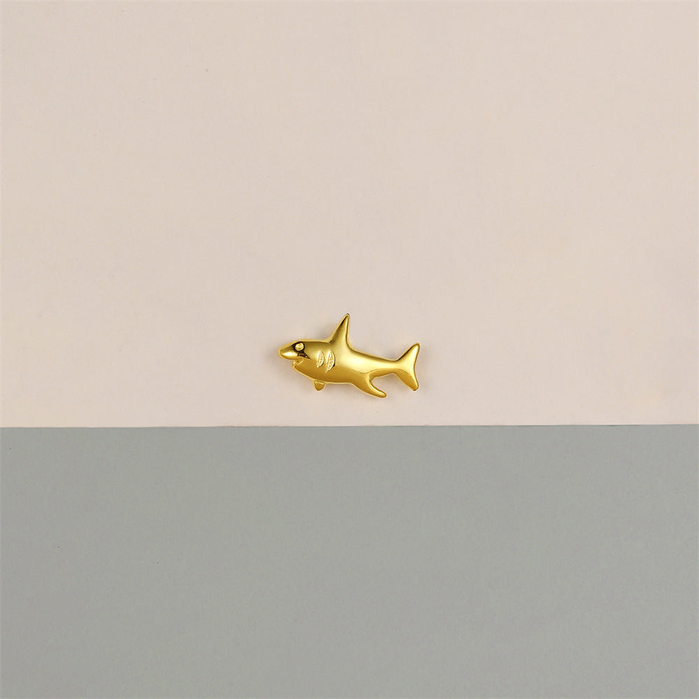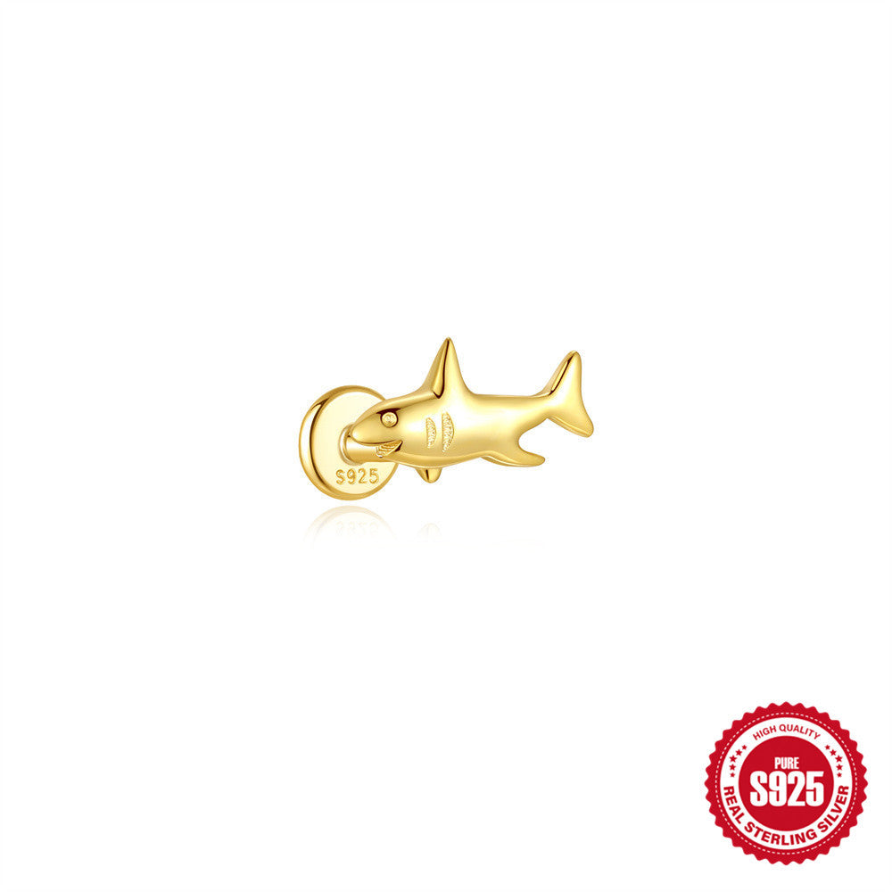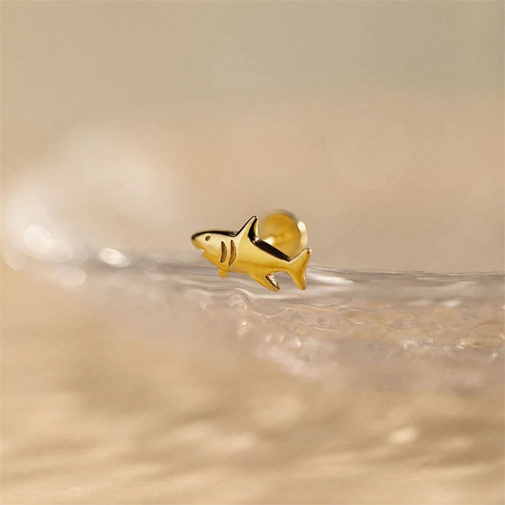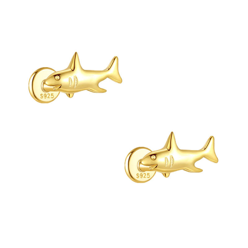 Cute Gold Shark Flat Back Earrings 925 Sterling Silver Animal Cartilage Piercing Earring