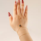 Enhance your outfit with this beautiful Gemstone Hand Chain Bracelet. Made with high-quality gemstones, this bracelet adds a touch of elegance and sophistication to any look. The hand chain design also adds a unique element to this piece, making it a must-have accessory for any jewelry collection.