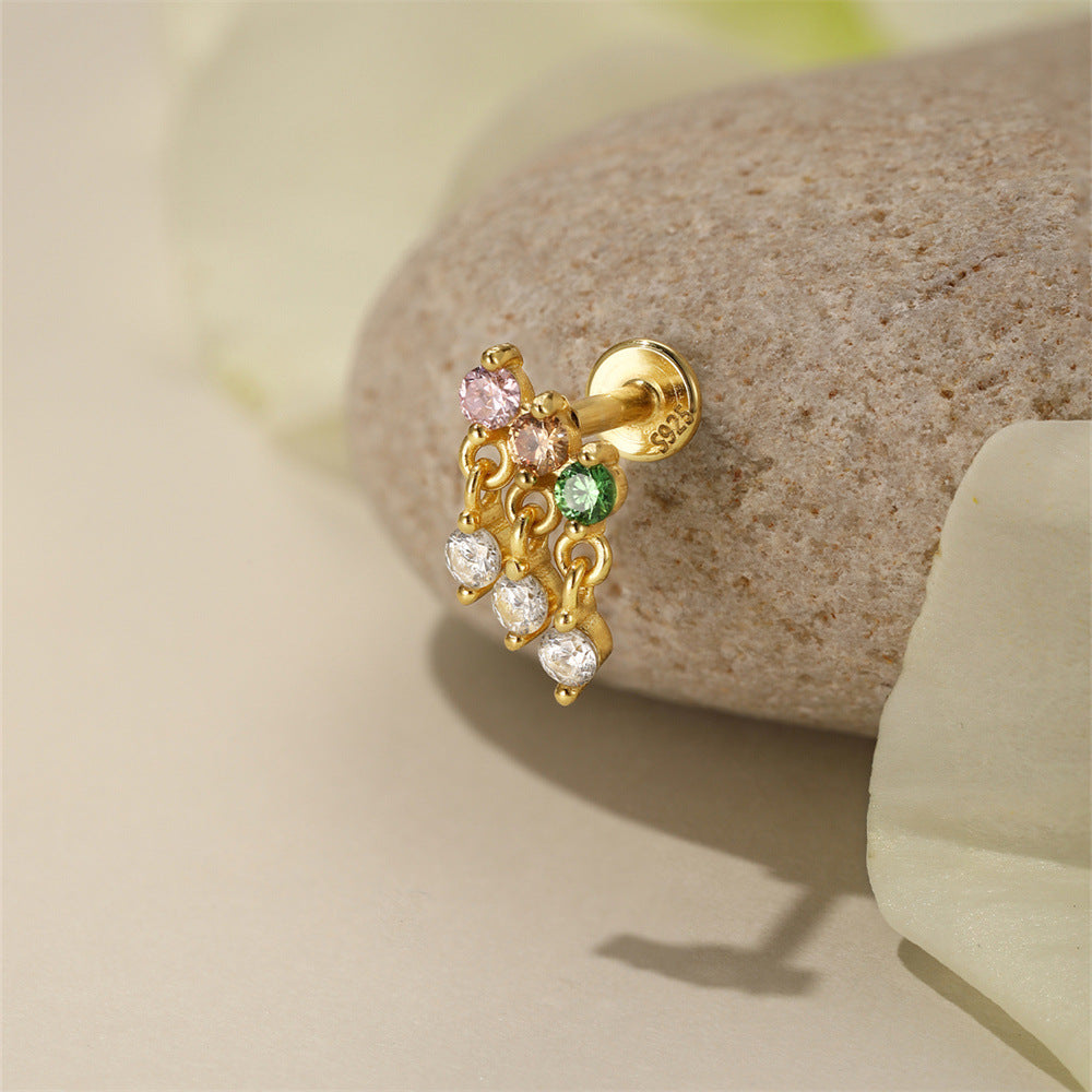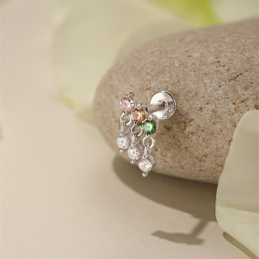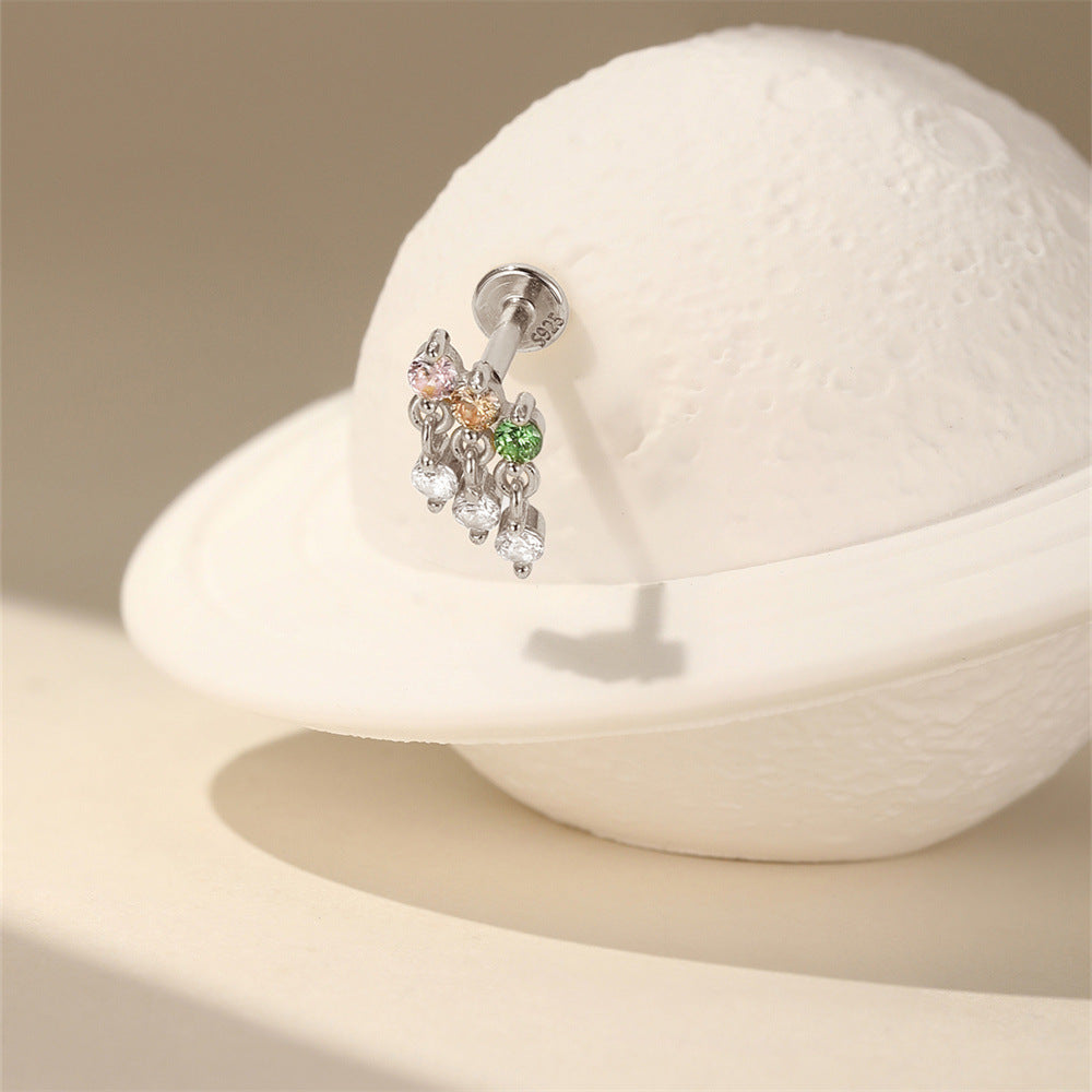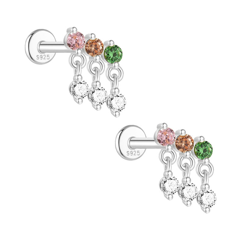 Boho Colorful Zircon Flat Back Earring - S925 Sterling Silver Tassel Cartilage Ear Jewelry