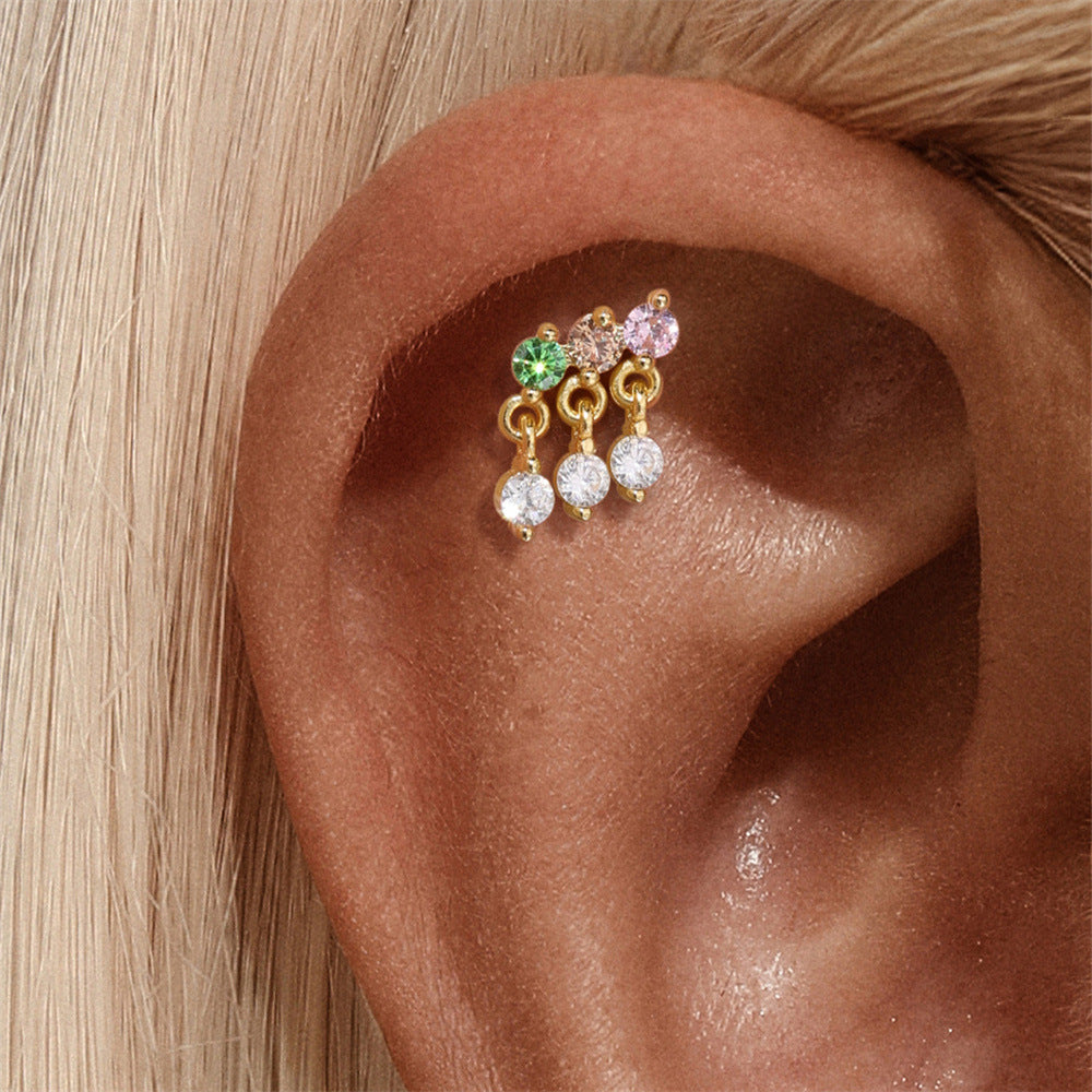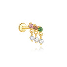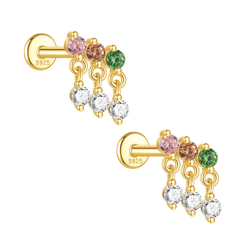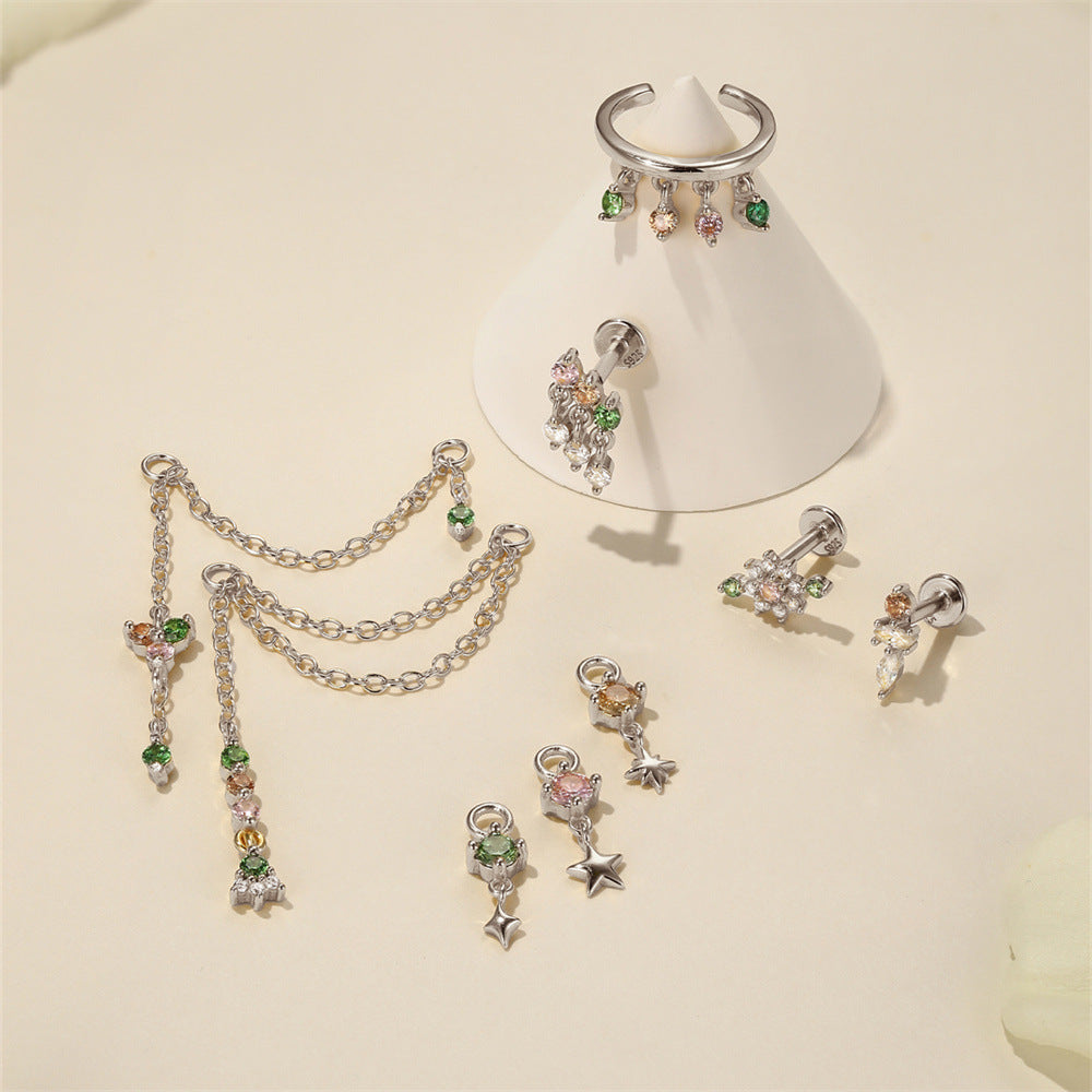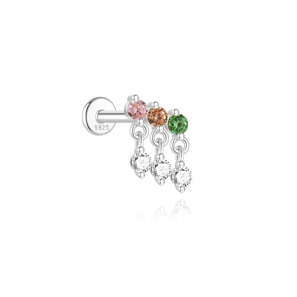 Boho Colorful Zircon Flat Back Earring - S925 Sterling Silver Tassel Cartilage Ear Jewelry