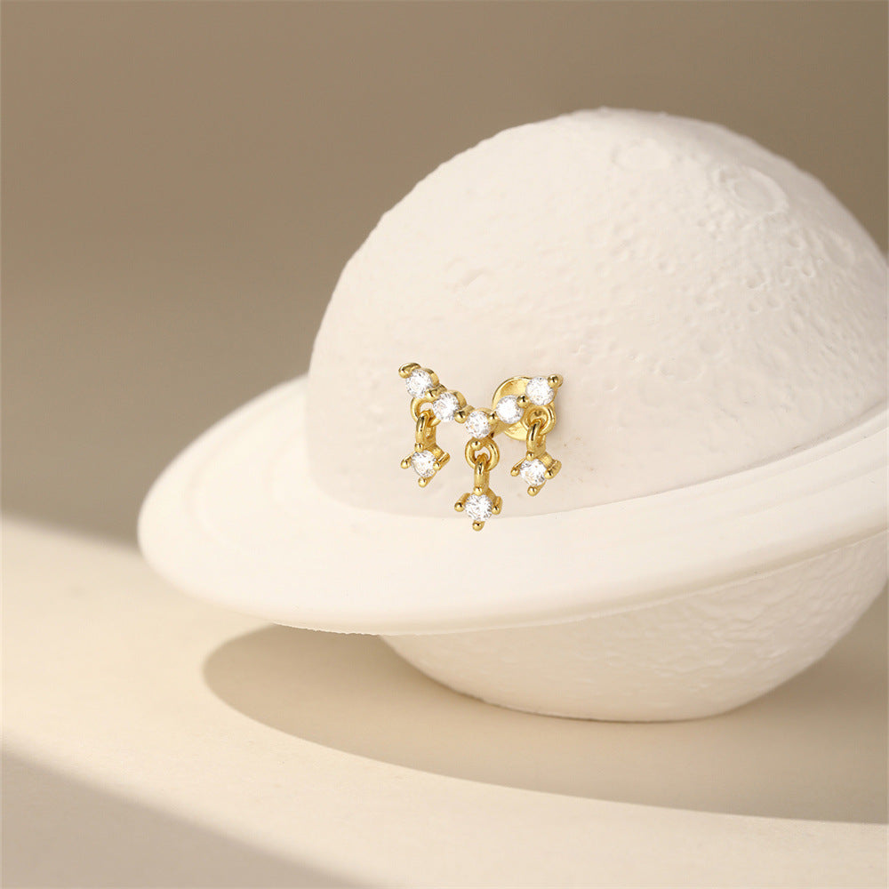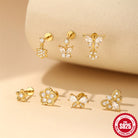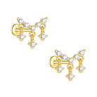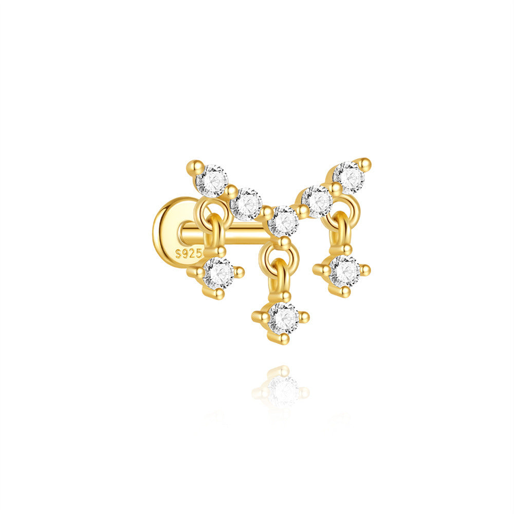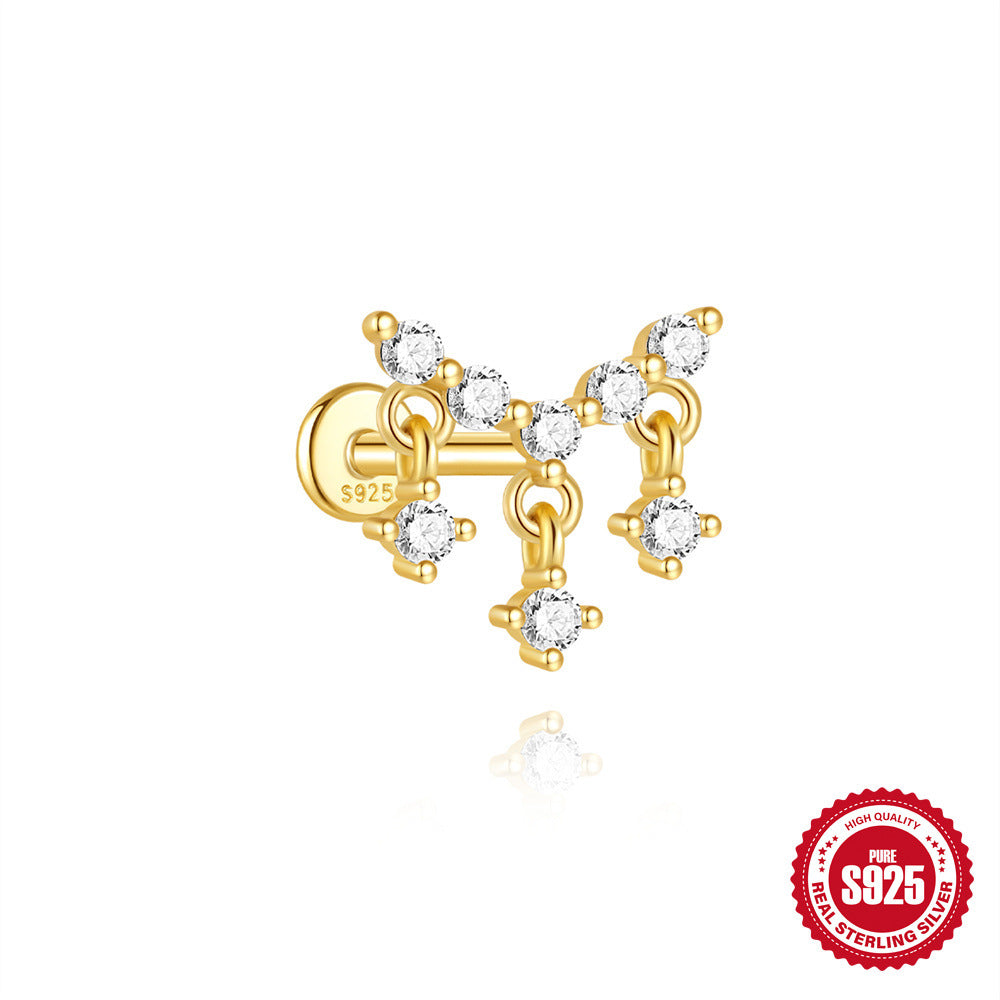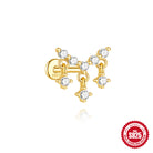 Geometric Hollow Star Flat Back Earrings 925 Sterling Silver Bar Design for Helix & Tragus