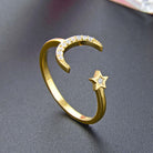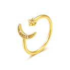Gold CZ Diamond Adjustable Moon and Star Ring