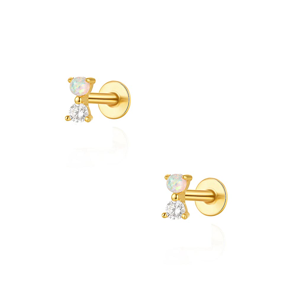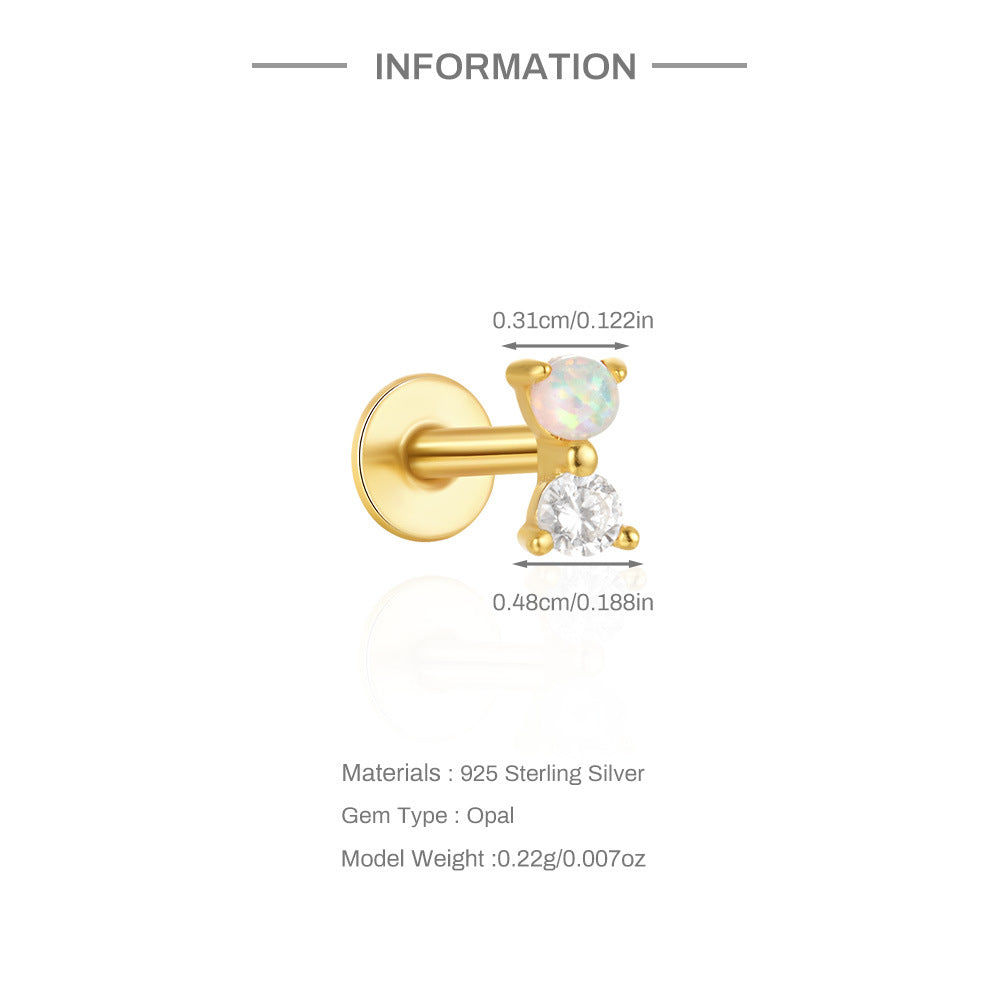 925 Silver Round Opal CZ Diamond Flat Back Earrings