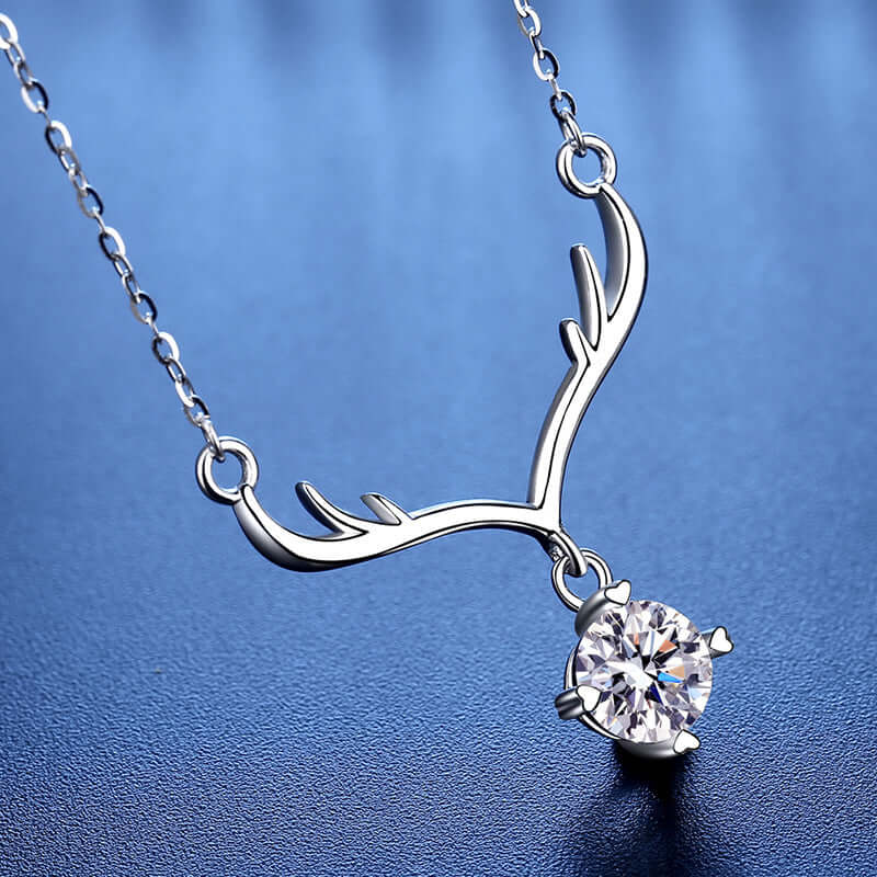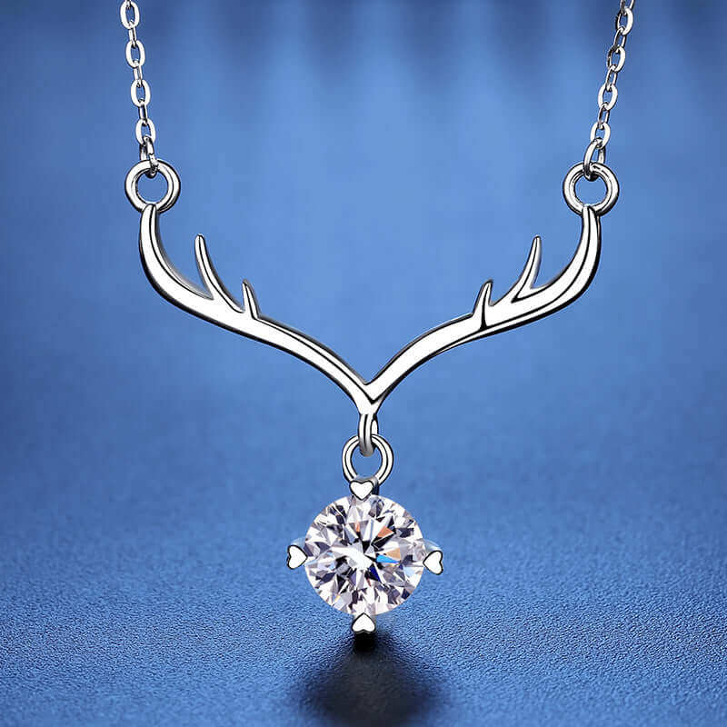 Collana in argento sterling 925 con pendente in alce Moissanite