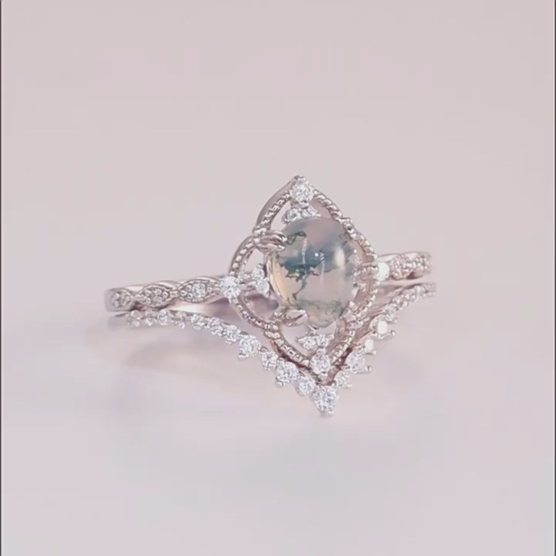 このユニークな苔瑪瑙リングであなたの個性を披露してください。 天然の苔瑪瑙がはめ込まれたこのスターリングシルバーの苔瑪瑙の婚約指輪は、死までの愛の絡み合った永遠を表しています。 ユニークで活気に満ちた天然の苔瑪瑙は、活力と美しい愛を伝えます。 川の植物のように一生絡み合い、その絆は時の終わりまで続きます。 その印象的な色合いで、水草瑪瑙は特に女性を魅了します。