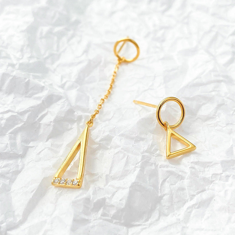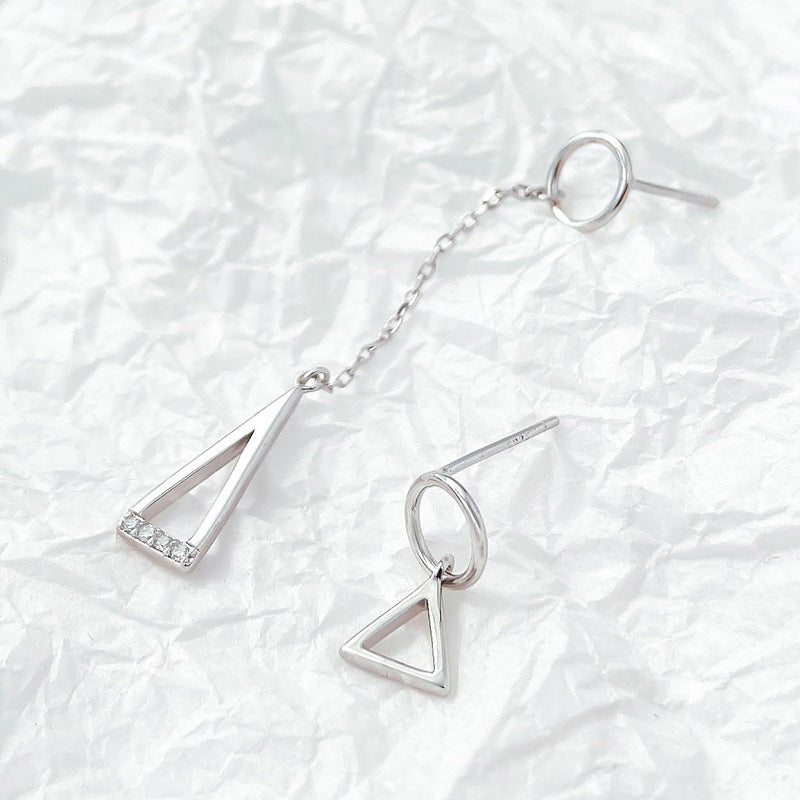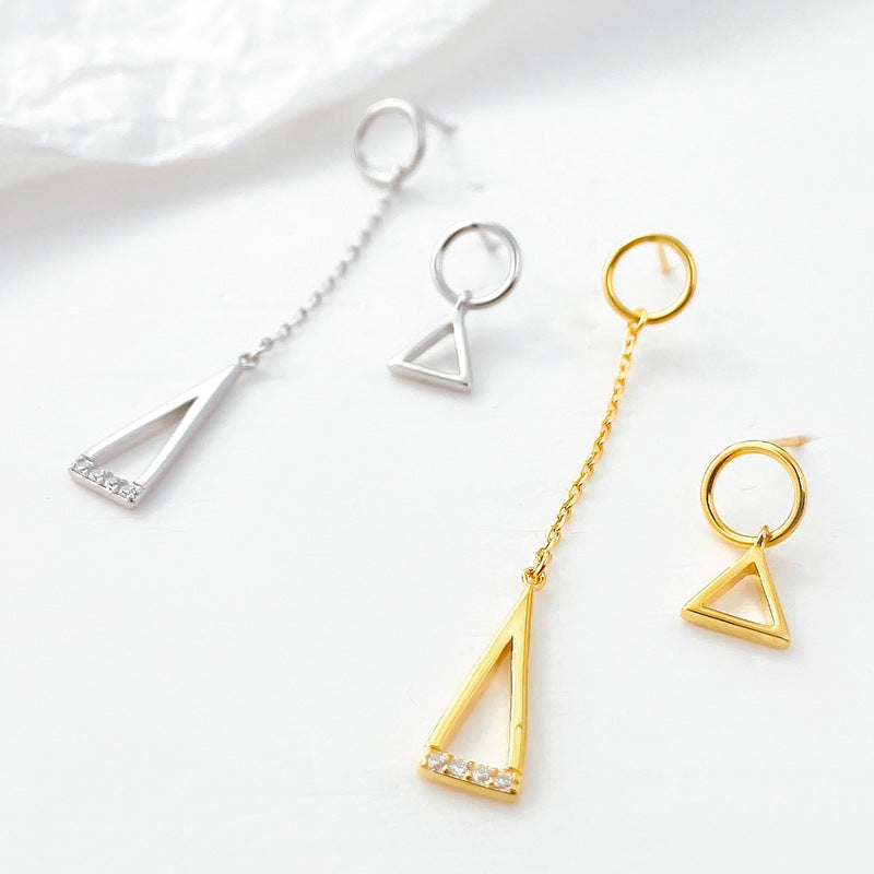 S925 Silver Asymmetric Circle Triangle Drop Earrings