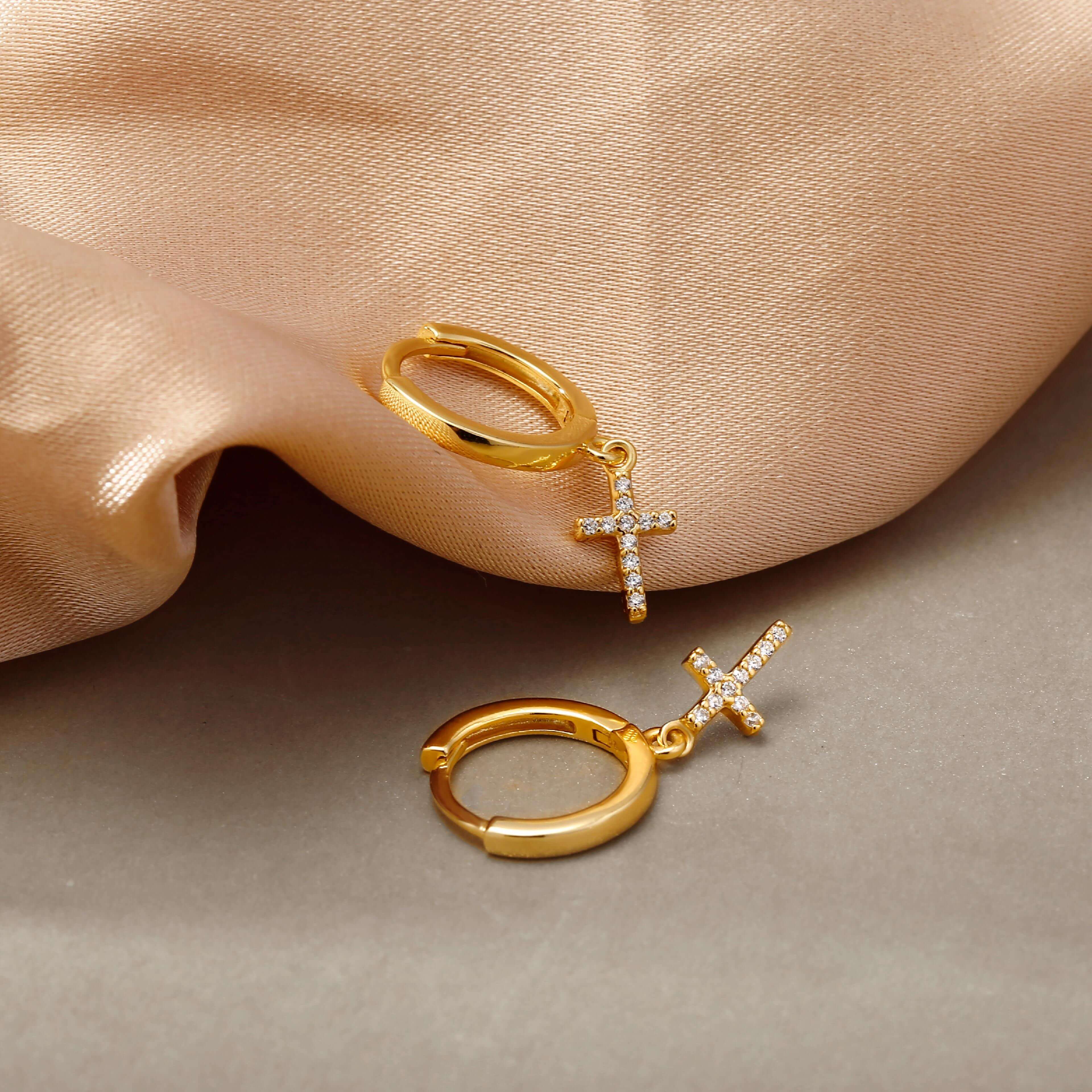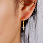 Huggie Hoop 耳环,饰有魅力简约可爱十字架