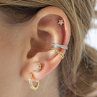 Curate your perfect ear with the addition of the Forget Me Not Barbell Piercing, a perfectly circular piece with 5 sparkling clear gems. This earring is crafted from surgical steel for long-lasting comfort and easy wear. The bright and easy-to-clean gemstones will bring a touch of sophisticated sparkle to your look.