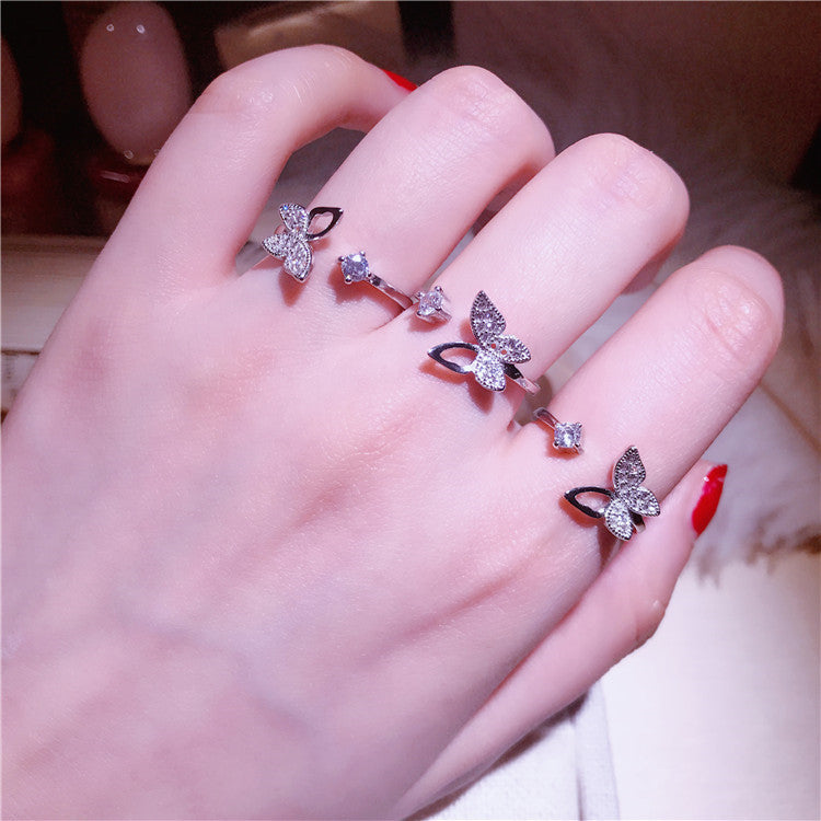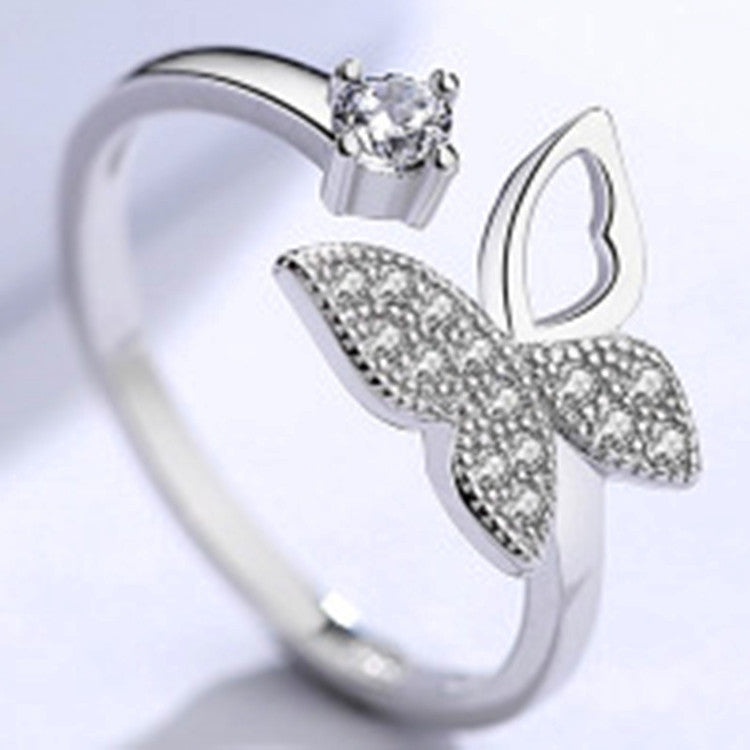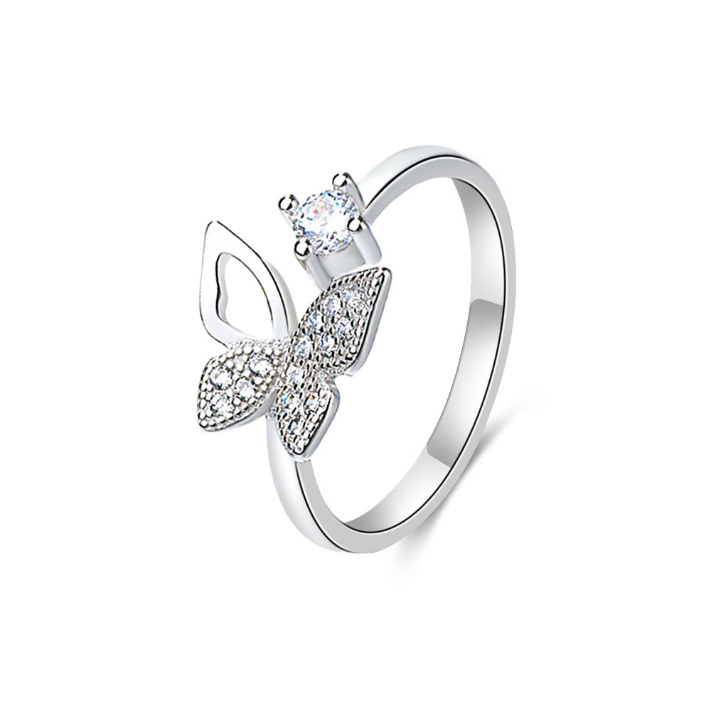 S925 Silver Open Butterfly Toi et Moi Ring