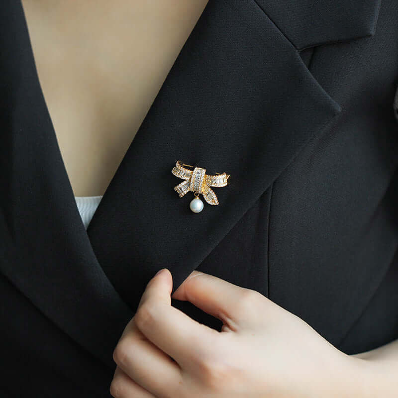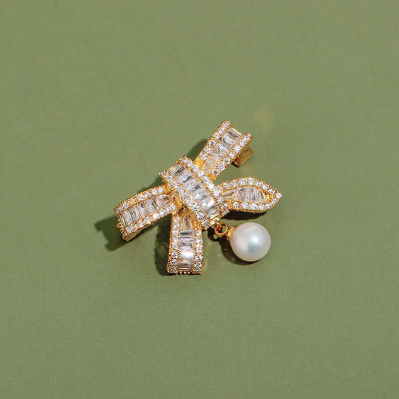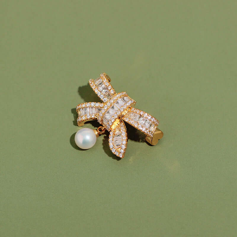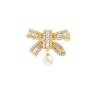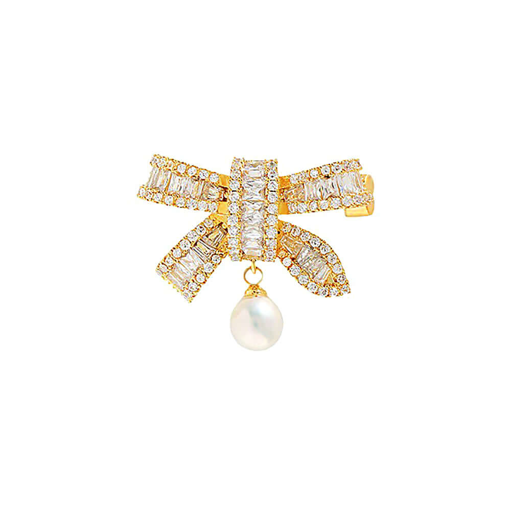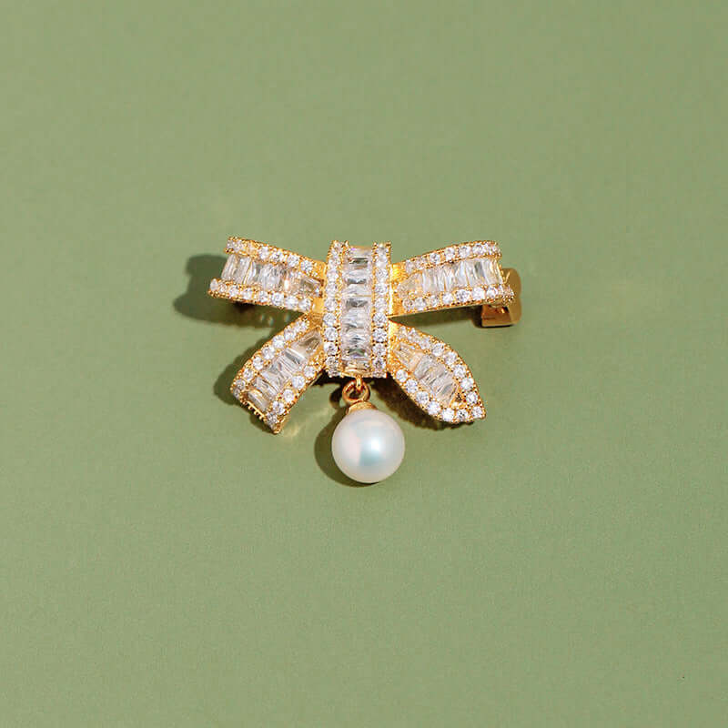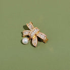 Copper Multi-Diamond Luxury Pearl Bow Brooch