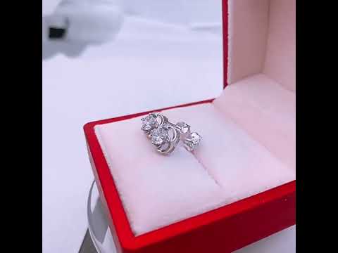 These beautiful Delicate Clover Moissanite Stud Earrings off an eye-catching design with sparkling moissanite stones. With a total carat weight of 3.0, these earrings are sure to make a statement. Each earring showcases a stunning center stone, surrounded by delicate clover-shaped accents.