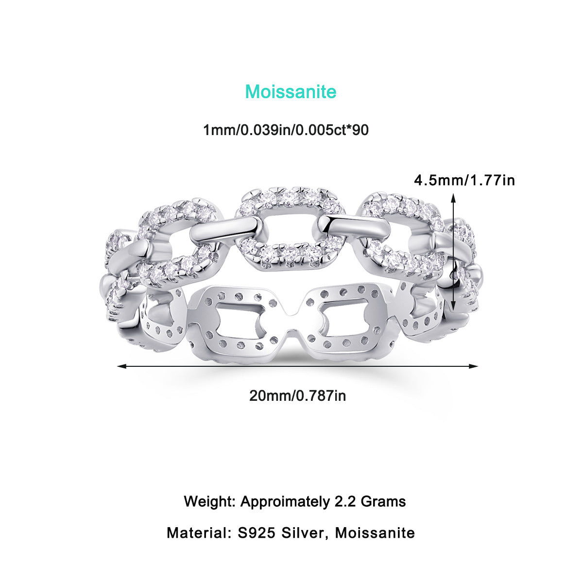Unleash your daring side with the 925 Silver Chain Moissanite Ring. Crafted with a shimmering moissanite stone, this ring is set in high-quality 925 silver chain. Adorn your finger with this bold and adventurous piece, guaranteed to elevate any outfit.