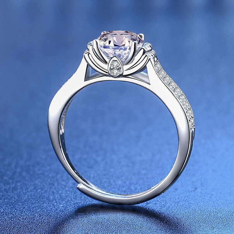 Briljante bloem Moissanite-ring met dubbele steun