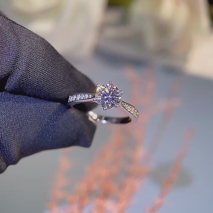 Zilveren Sterrenlicht Zes Klauw Moissanite Ring