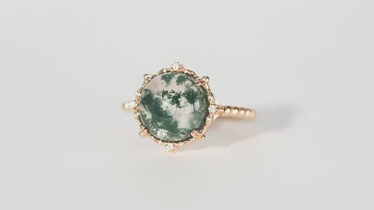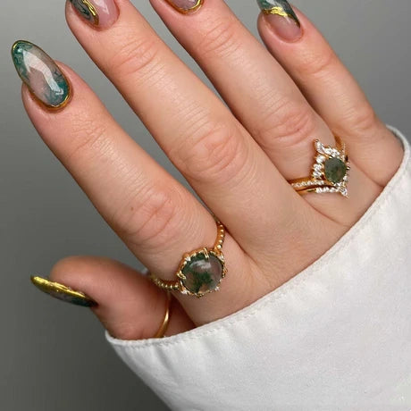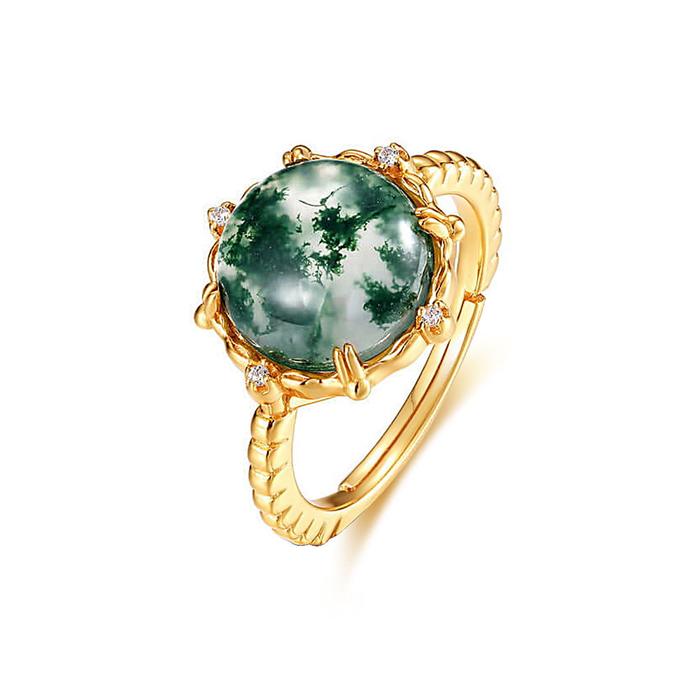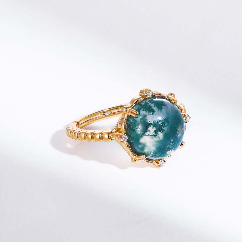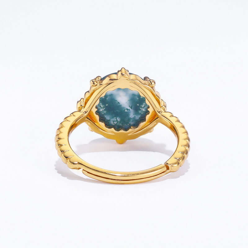 Mosagaat is een soort agaat met een natuurlijk voorkomende textuur die lijkt op mossen die in een riviervijver drijven, sierlijk en kronkelend. Het is verkrijgbaar in groen, paars en geel. Maak gebruik van de kracht van de natuur met een tijdloos, modieus accessoire. Draag de ring van mosagaat om aardse schoonheid en onmiskenbare finesse te ontgrendelen - en laat zien dat het je menens is.