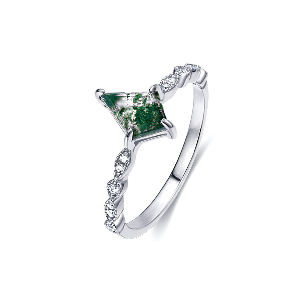 Sterling Zilveren Rhombus Vorm Aquatische Groene Mos Agaat Ring