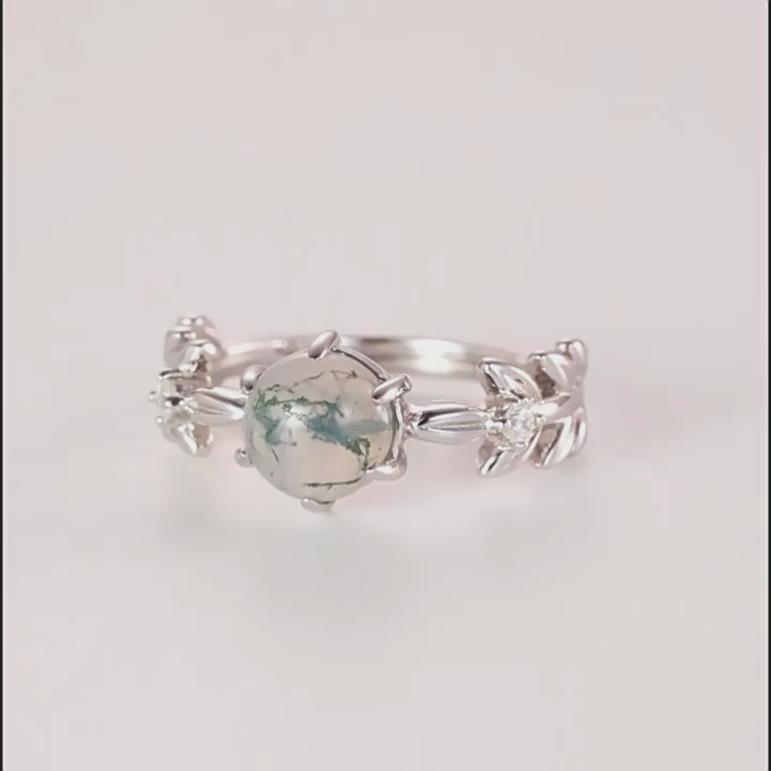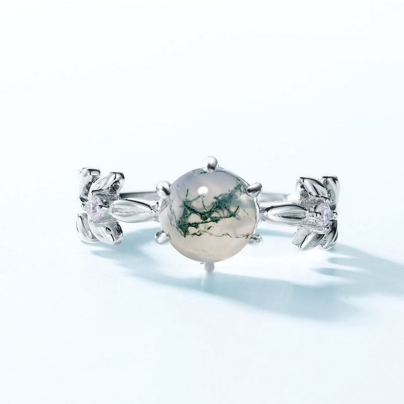 Laat je persoonlijkheid zien met deze unieke ring van mosagaat. Deze verlovingsring van sterling zilveren mosagaat ingelegd met natuurlijk mosagaat vertegenwoordigt de verstrengelde eeuwigheid van de liefde - tot de dood. Uniek en levendig, elke natuurlijke mosagaat straalt vitaliteit en mooie liefde uit. Levenslang met elkaar verweven, zoals rivierplanten, duurt hun band tot het einde der tijden. Met zijn opvallende tinten is de watergrasagaat bijzonder boeiend voor vrouwen.