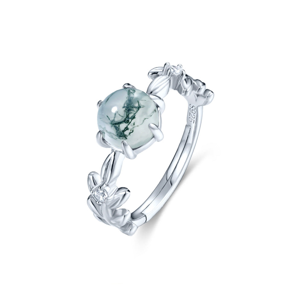 Trendolla zes klauw blad mos agaat verloving verstelbare ring