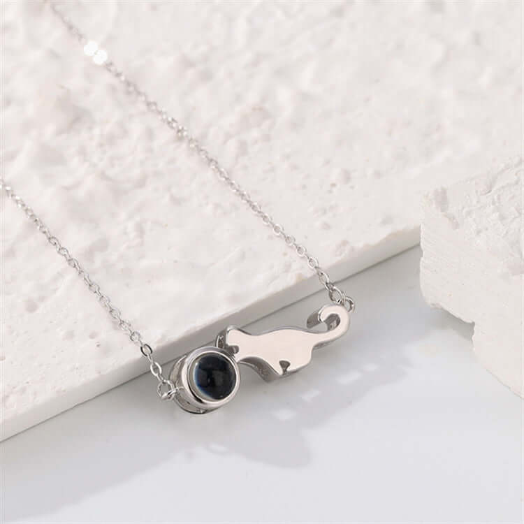 Keep your furry friend close to your heart with our Memory Gift Cat Necklace. Made from sterling silver, this necklace features a picture inside, allowing you to always remember your beloved pet. A heartfelt gift for any cat lover and a cherished keepsake to cherish and hold dear.
