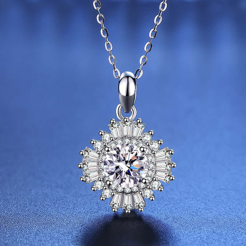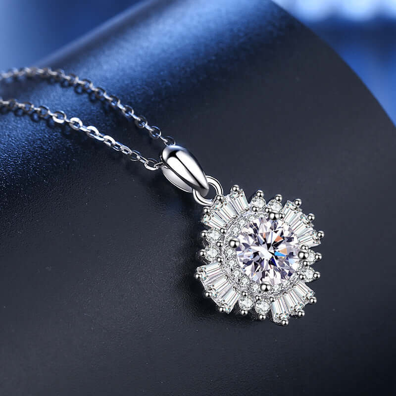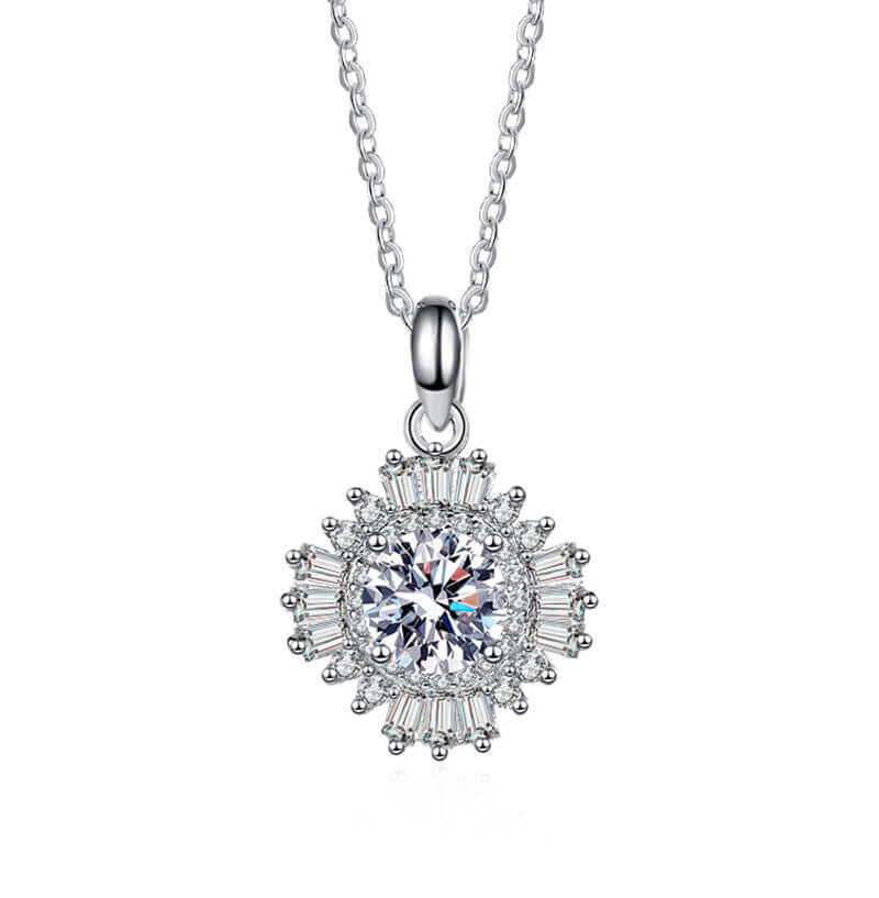 Deze prachtige Diamond Square Sunflower Moissanite Ketting schittert met een perfecte slijpvorm en helderheid. Het prachtige zonnebloemvormige ontwerp is voorzien van moissanite-stenen die superieure schittering en vuur vertonen. Een tijdloos stuk voor je collectie.