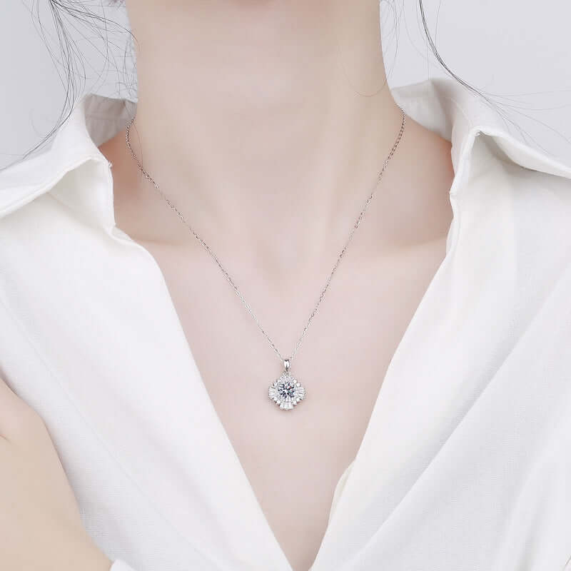 Diamond Vierkante Zonnebloem Moissanite Ketting