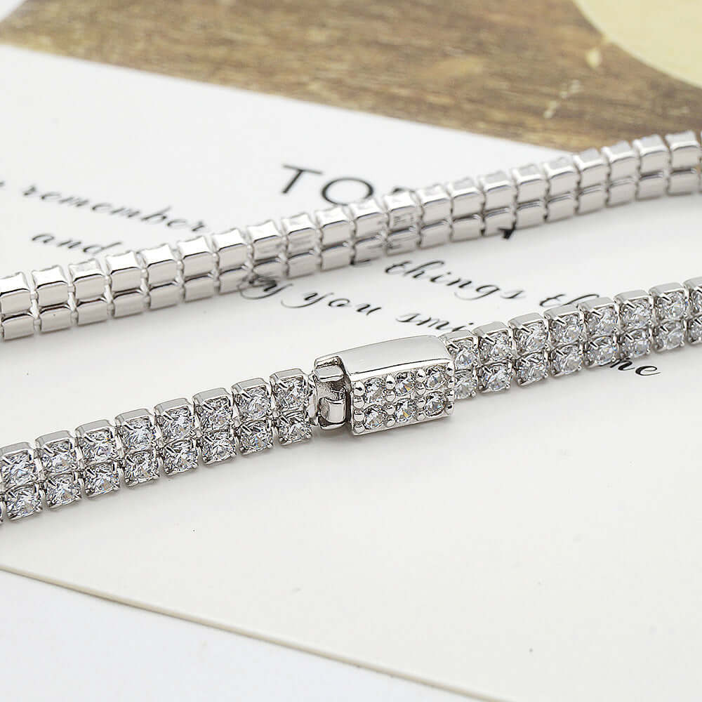 925 Sterling Silver Double Row Diamond Tennis Bracelet For Men and Women