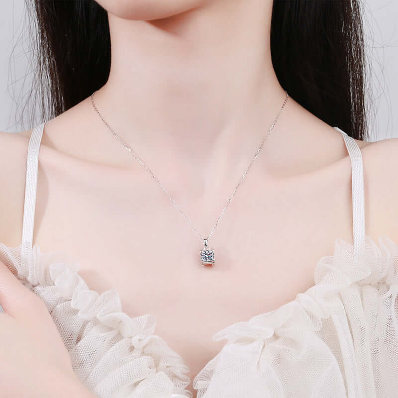 Deze 18K witgouden hanger ketting is voorzien van een prachtige vierkant gesneden moissaniet, een ideale keuze voor de moderne vrouw. De diamantachtige steen zal zeker een sprankeling en verfijning brengen in elke look.