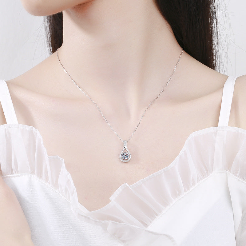 Deze Water Drop Heart Moissanite ketting hanger brengt sprankeling en elegantie in elke outfit. Deze hanger is gemaakt van sterling zilver en een echte Moissanite-edelsteen en heeft een stralende geslepen steen die zeker de aandacht zal trekken. Het perfecte accessoire voor elke gelegenheid.