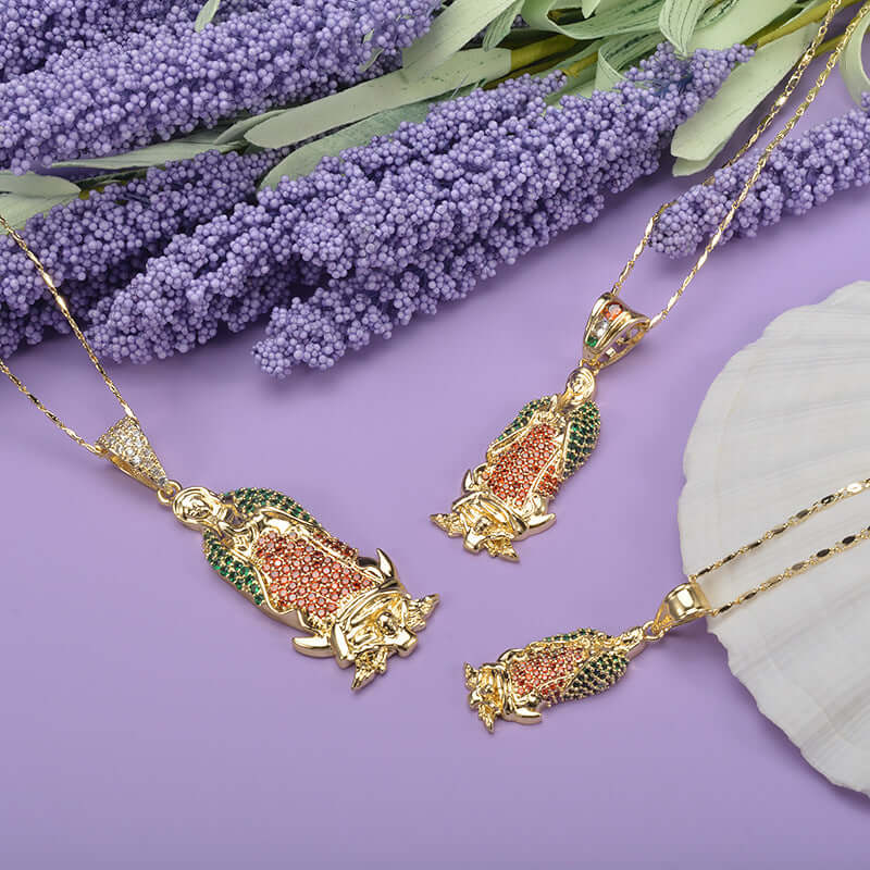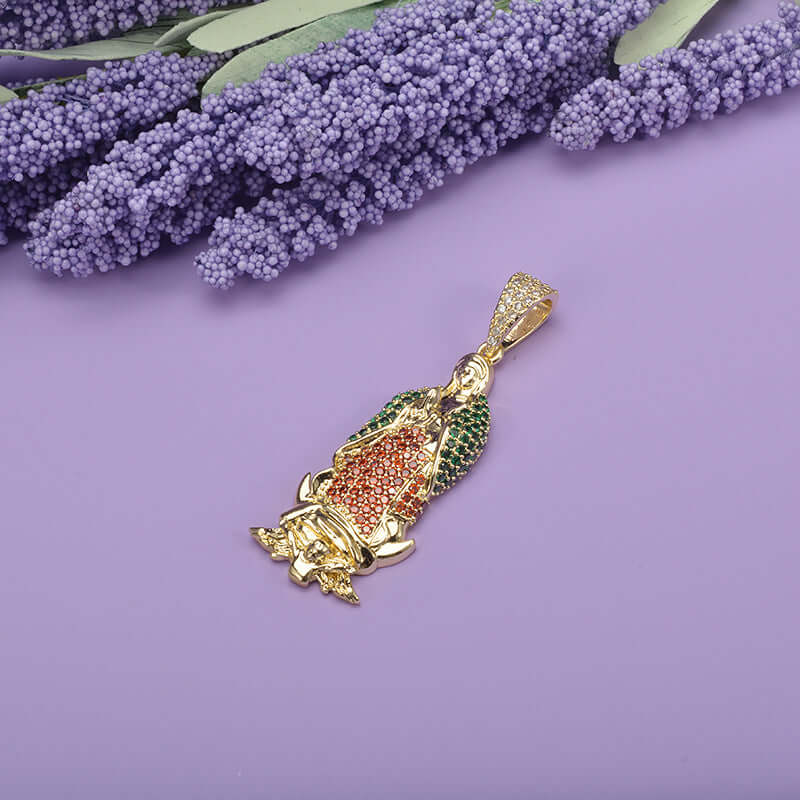 The Our Lady of Guadalupe Necklace is displayed with beautiful attention to detail. The pendant has a beautifully designed texture that makes the image come out and has everything you would want in a Virgin Mary Virgencita Necklace. Make a statement and show your devotion with this virgencita necklace! It is a great gift and a personal keepsake.